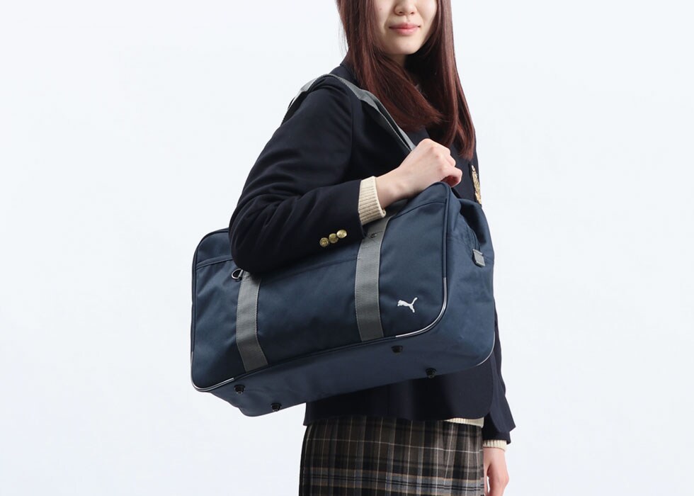 ドイツ発の世界的スポーツブランド『PUMA/プーマ』から、ブランドロゴがワンポイントになったスクールバッグが登場。飽きのこないベーシックなデザインで、制服スタイルにもぴったり。ハンドルが長めになっているので肩掛けしやすく、底板付きで型崩れしにくいなど、細かな工夫が使い勝手をUPしています!