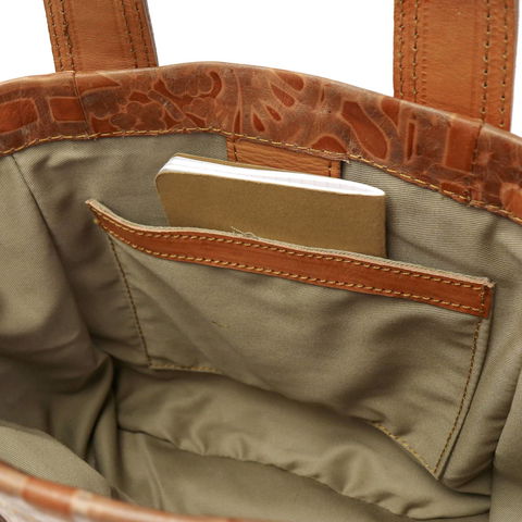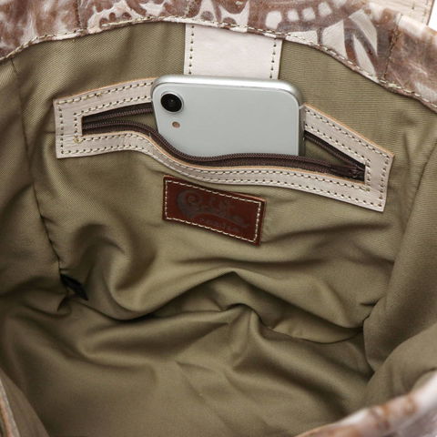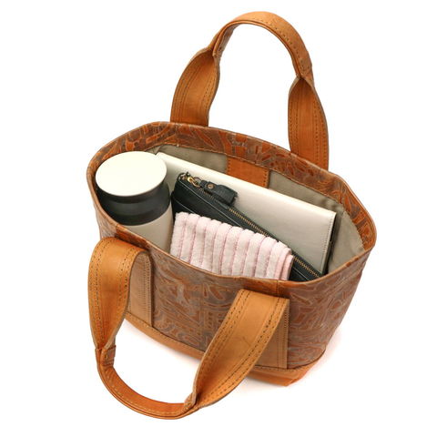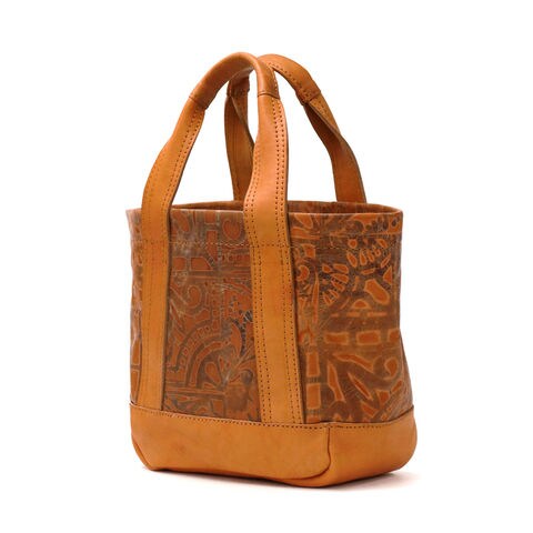 インドネシアの伝統工芸に用いられる技術を生かし、robitaオリジナルの柄を焼き付けたトートバッグ。レザー全体にオリジナルの柄を施すことにより存在感はグッと高まりますが、レザー本来の温かみと焼き付けによる独特の色合いが調和のとれた仕上がりで、装いにすっと馴染んでくれます。