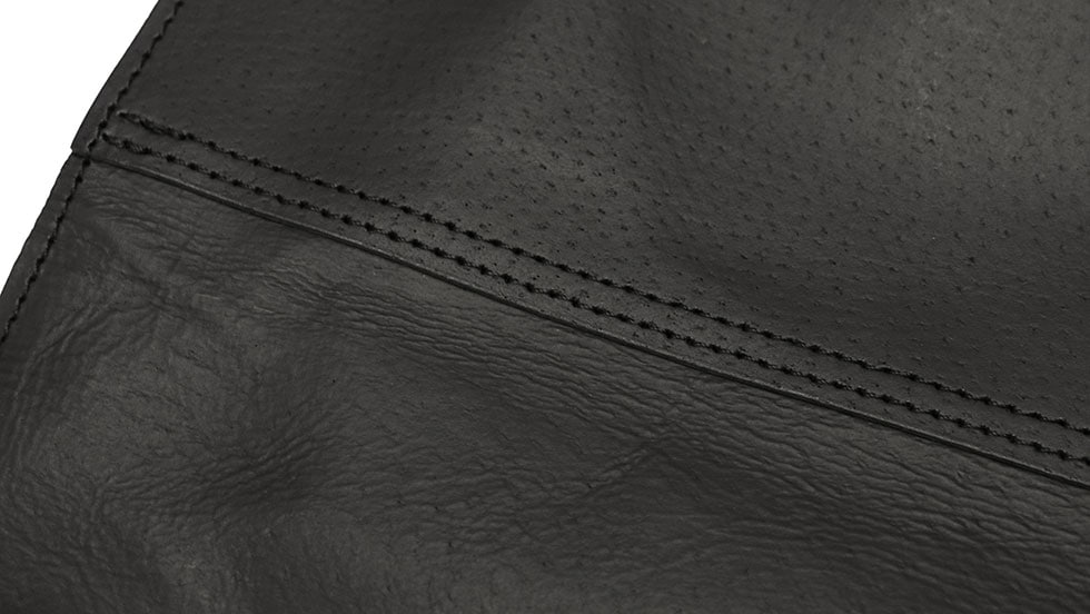 本体素材には、キャンバスのような適度な堅さとフラットな表情、撥水性に優れたオリジナルのピッグスキン「TOILE/トワル」を使用。均一で深みのある色を出すために、革の床面に何層も重ね塗りを施し、あえて革らしい風合いをおさえた構築的な質感に仕上がっています。