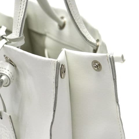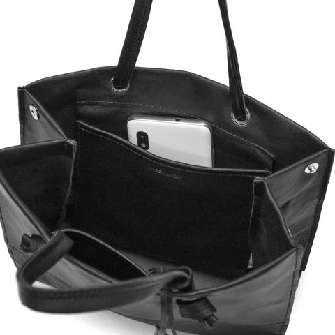 デパートのショッパー(紙袋)をモチーフにしたミニトート。スクエア型の角が立った美しいフォルムや、たっぷりと容量を確保する広い底マチ、サッと置いても自立する安定性など、紙袋の良い所をオリジナルレザーで再現しました。デザイン性、機能性共に優れ、デイリーに持ち歩きたくなるアイテムです。