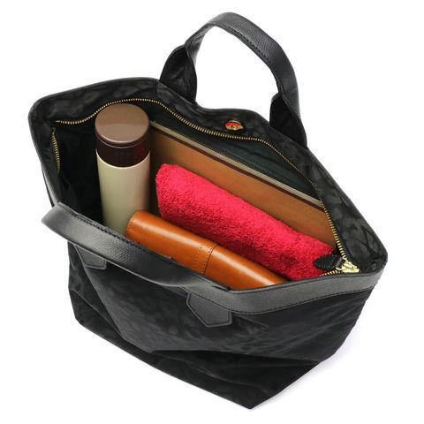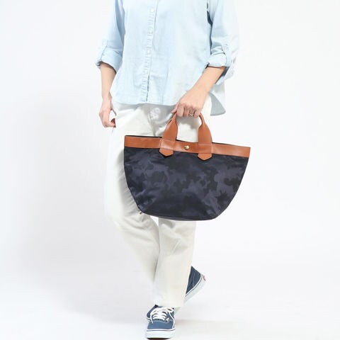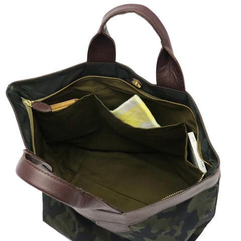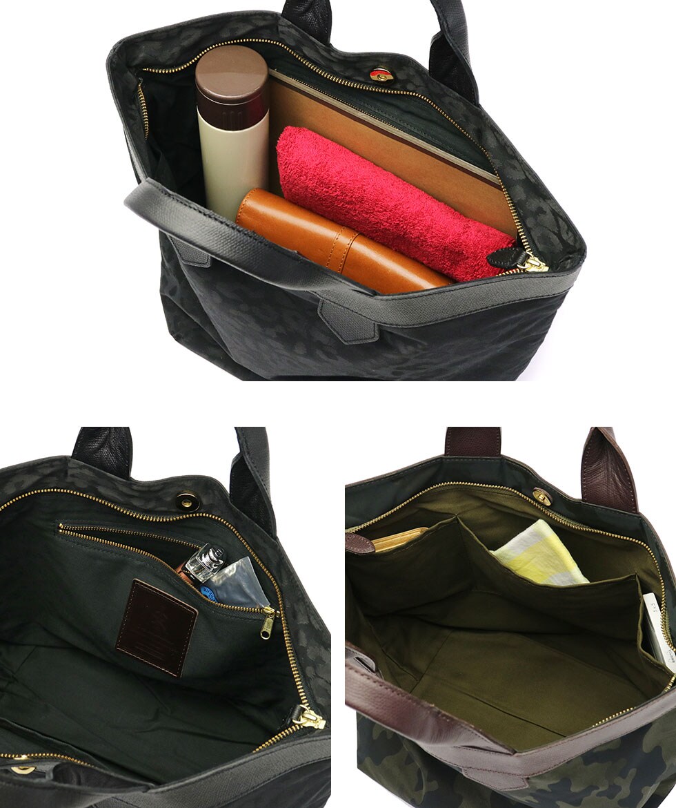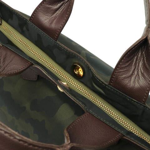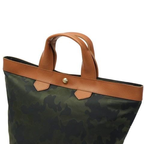 自然な風合いや経年変化による持ち味の良さをファクトリーブランドならではの職人技で魅せる『regalo/レガロ』。こちらは定番の「ディマンシェ」シリーズの中でも人気のトートバッグです。素材には上品かつカジュアルにもマッチする、迷彩とレオパード柄のジャガード織りを採用しています。