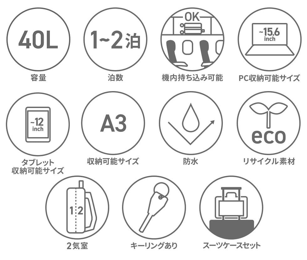 スーツケースのように大きく広げる事ができ、簡単に荷物が収納できるバックパック。付属の取り外し可能なロールトップバックにはTPUライニングが施されており、におい・湿気・汚れがバッグの他の部分に広がるのを防ぎます。クッション性を備えた収納スペースや複数の収納ポケット、スーツケース取り付けなど、アクティブな日々の生活にぴったりの機能を装備。機内持ち込み可能サイズなので、旅行にもおすすめのアイテムです。