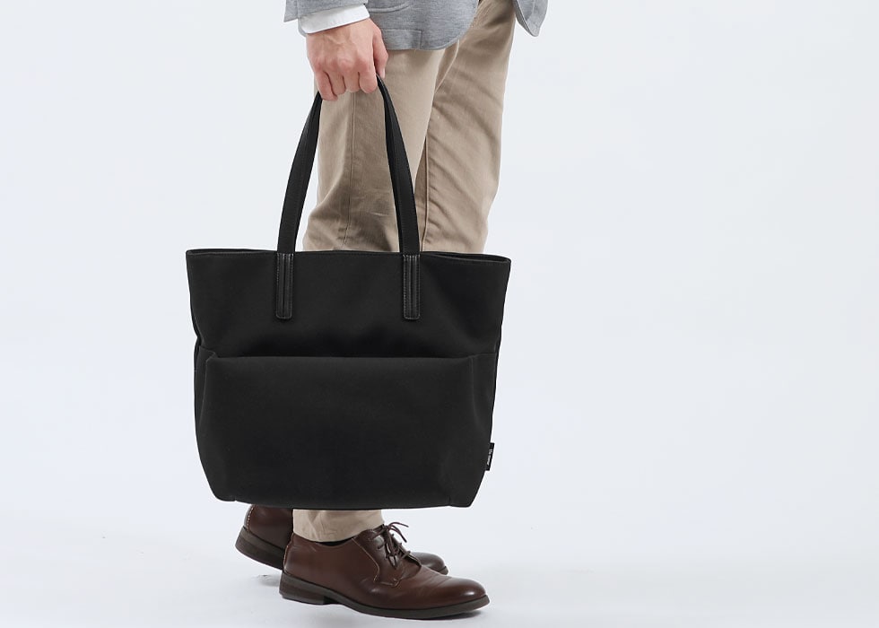スーツやジャケットに使用される生地に特殊加工を施した、マットな見た目が特徴の『TORO2』シリーズ。正方形型のフォルムを採用したトートバッグです。撥水加工が施されているので、雨や雪の日でも安心してご使用頂けます。ビジネス・カジュアルでもマッチする、Un coeurの新しい2WAYの提案です。