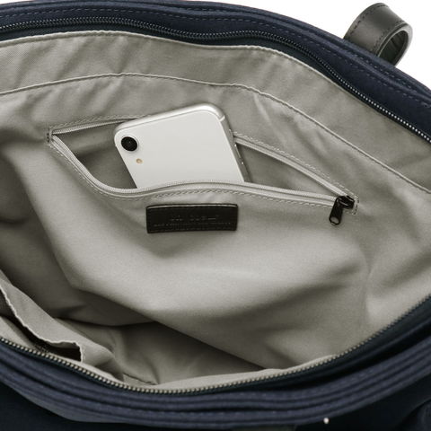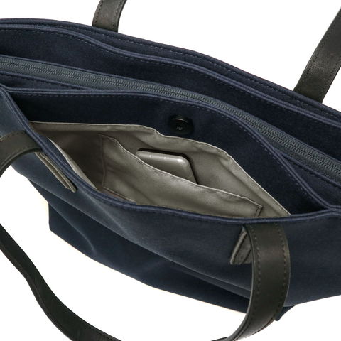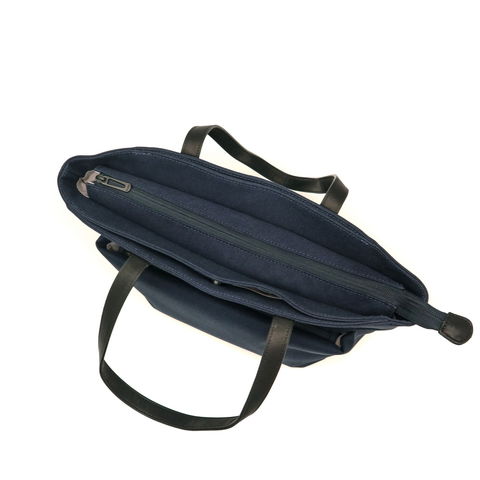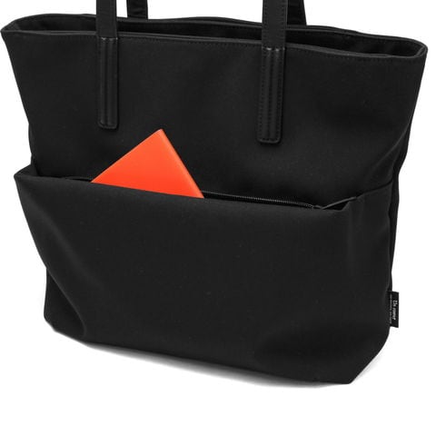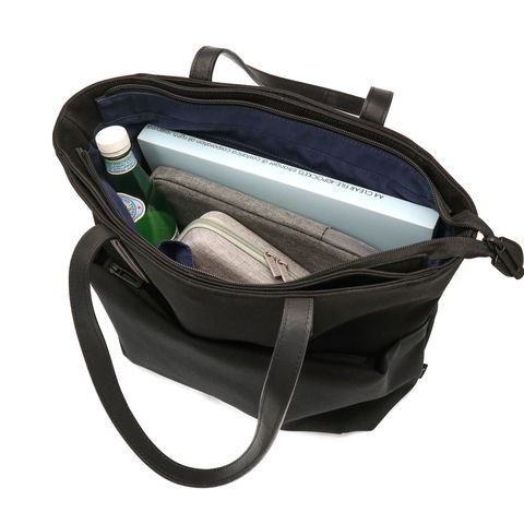 メインルームはA4書類がちょうど収まるサイズ感です。マチが広いため、ペットボトルやポーチなど厚みのあるアイテムもまとめて収納可能。収納口はファスナー仕様となっており、荷物が飛び出してしまう不安もありません。