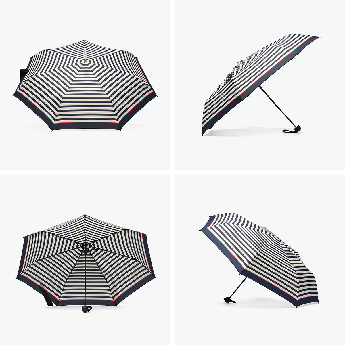 開いた時の直径98cmになり、荷物を持っていても濡れにくい大きめサイズの折りたたみ傘。持ち手には樹脂素材を使用し、滑りにくく手にフィットしやすい仕様です。傘を巻く帯は太めで、ファスナー付き収納袋は傘の出し入れがスムーズに行えます。雨の日だけでなく日傘としても使える晴雨兼用で、シーンやファッションを問わず毎日使うことができる、ベーシックなデザインに仕上がっています。