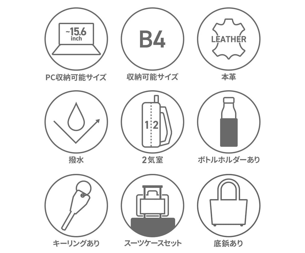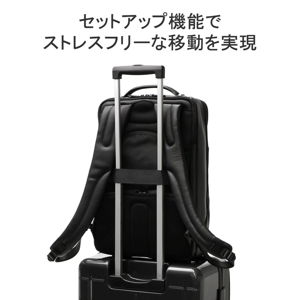 スタイリッシュでシンプルなデザインの中に、機能性を追求したシリーズ『Z PACK』のレザーリュック。上質な本革を使用し、撥水加工を施すことでスマートなデザインと耐久性を持ち合わせています。こちらは、便利な2層構造でB4サイズも収まる15Lのリュック。仕分け能力に優れた多彩な収納部や、スーツケースへのセットアップ機能など、ビジネスシーンを快適にするハイスペックな仕上がりとなっています。