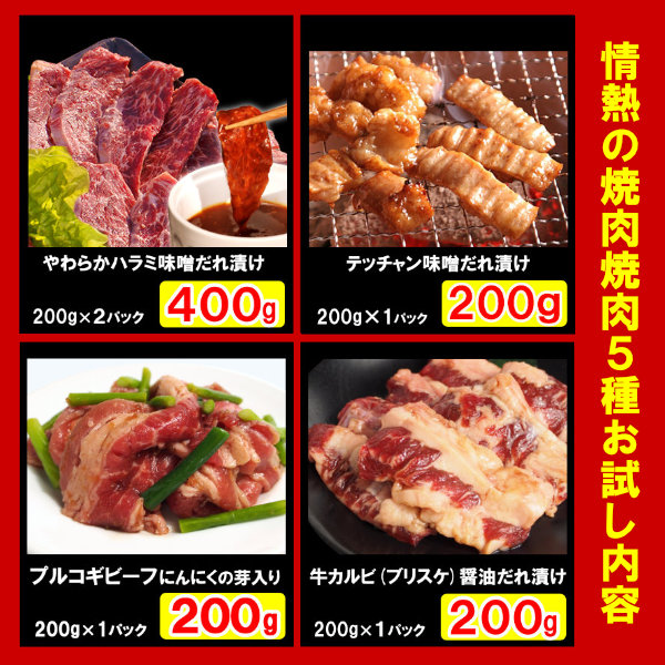焼き肉 焼肉 メガ盛り 計1.2kg 焼肉5種お試しセット バーベキュー BBQ 牛肉 肉 食品 にく(北海道・沖縄配送は別途送料追加)