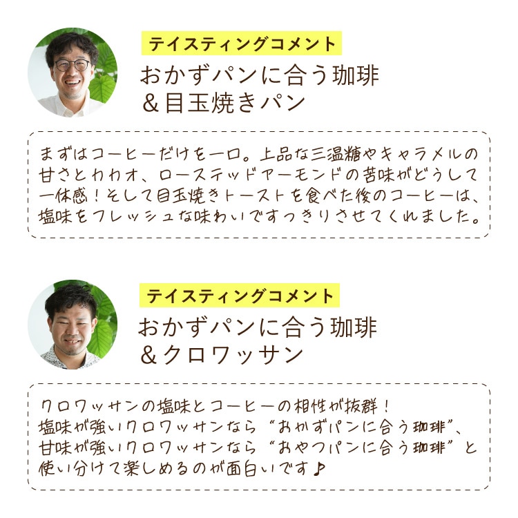 「ぱんじかん」とはズバリ・・・パンに合う珈琲。パンとコーヒーから生まれるマリアージュに着目して生まれた、2種類の味わいをお楽しみください。