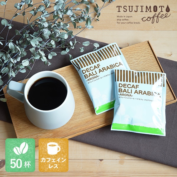 TSUJIMOTO coffeeで原材料から選定し、カナダでカフェインを除去した完全オリジナルのデカフェです。 原材料は、神々の島と呼ばれるインドネシア バリ島にて栽培・収穫・精製処理された単一品種のアラビカ種コーヒー豆をセレクトしました。 農薬を使用せず、自然由来の有機肥料のみで栽培・収穫されたコーヒーチェリーを、環境負荷に配慮した精製処理で生豆に仕上げております。 もちろん化学薬品を一切使用しない「スイスウォータープロセス」にてカフェインを除去(99.9%カフェインフリー)しているので、妊婦さんにも安心してお楽しみいただけます。 その芳醇な香りに、和三盆のような奥行きのある上品な甘さとビターチョコのような苦みがうまく調和しています。 心地の良い余韻とクリーンな味わいをお楽しみください。