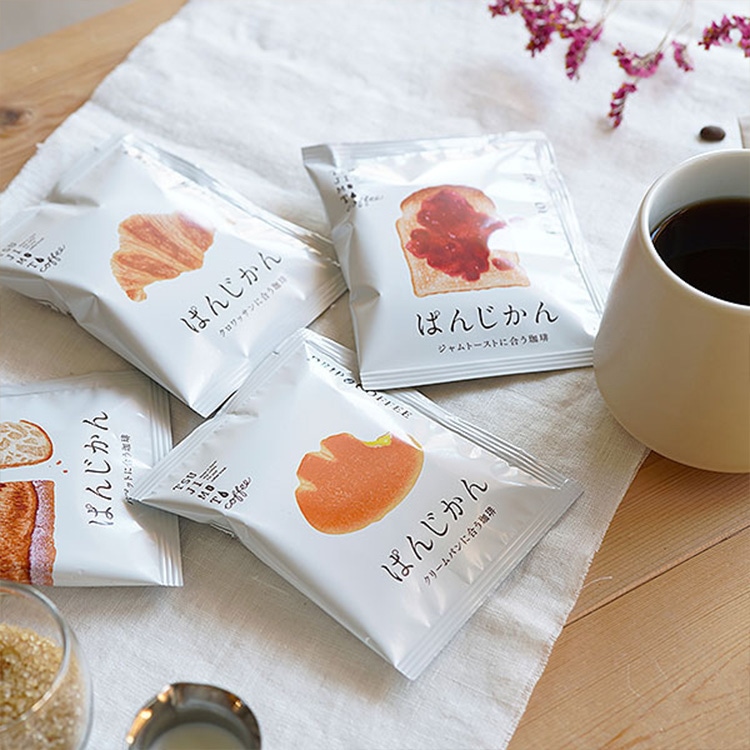 “クロワッサンに旬のフルーツ、そして淹れたてのカフェオレ。” “バゲットに有機野菜のサラダ、オムレツ、そして香り豊かなコーヒー。” パンとコーヒーの関係はとっても深く、“すてきなじかん” でやさしく包んでくれます。 ドリップコーヒー「ぱんじかん」は、クロワッサン・クリームパン・バケット・ジャムトーストに焦点を絞り、4種それぞれのマリアージュを考えました。 いずれもQグレーダー(コーヒーの評価ができる鑑定士)がセレクトし焙煎したスペシャルティコーヒーを、煎りたて挽きたての新鮮な状態で1杯ずつドリップバッグコーヒーに仕上げています。