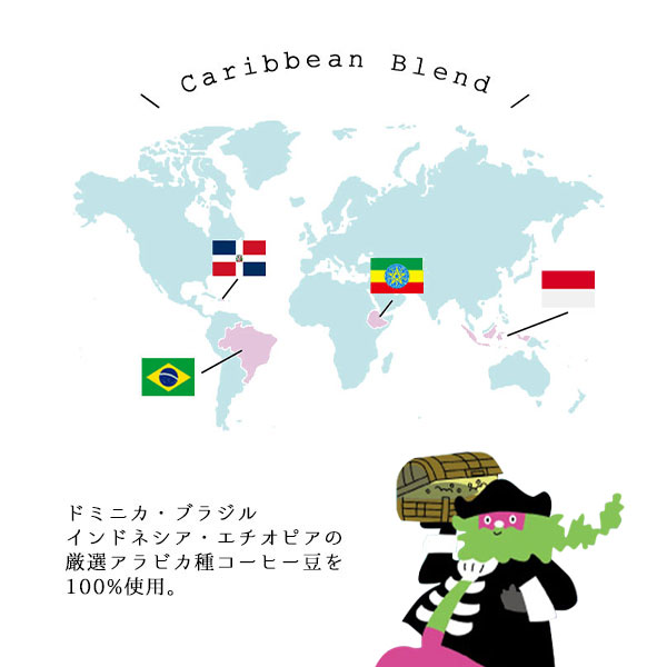 使用する原材料は、ドミニカ、ブラジル、インドネシア、エチオピア産の4種アラビカコーヒー豆を100%使用しています。