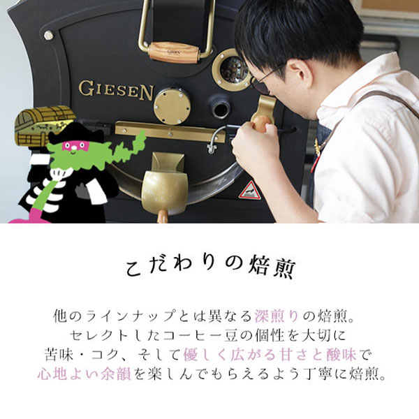 パッケージにイラストされたルイスとオスコロがコーヒー生産地を駆け回り届けてくれた宝石のようなコーヒー豆。