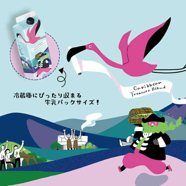 夏のすてきなじかんにオススメしたい スペシャルティコーヒー豆を使用したご機嫌なアイスコーヒー。 使用する原材料は、ドミニカ、ブラジル、インドネシア、エチオピア産の4種アラビカコーヒー豆を100%使用しています。 パッケージにイラストされたルイスとオスコロがコーヒー生産地を駆け回り届けてくれた宝石のようなコーヒー豆。 キラキラした夏におすすめのアイスコーヒーですてきなじかんをお過ごしください。
