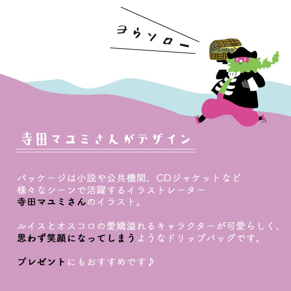 パッケージにイラストされたルイスとオスコロがコーヒー生産地を駆け回り届けてくれた宝石のようなコーヒー豆。