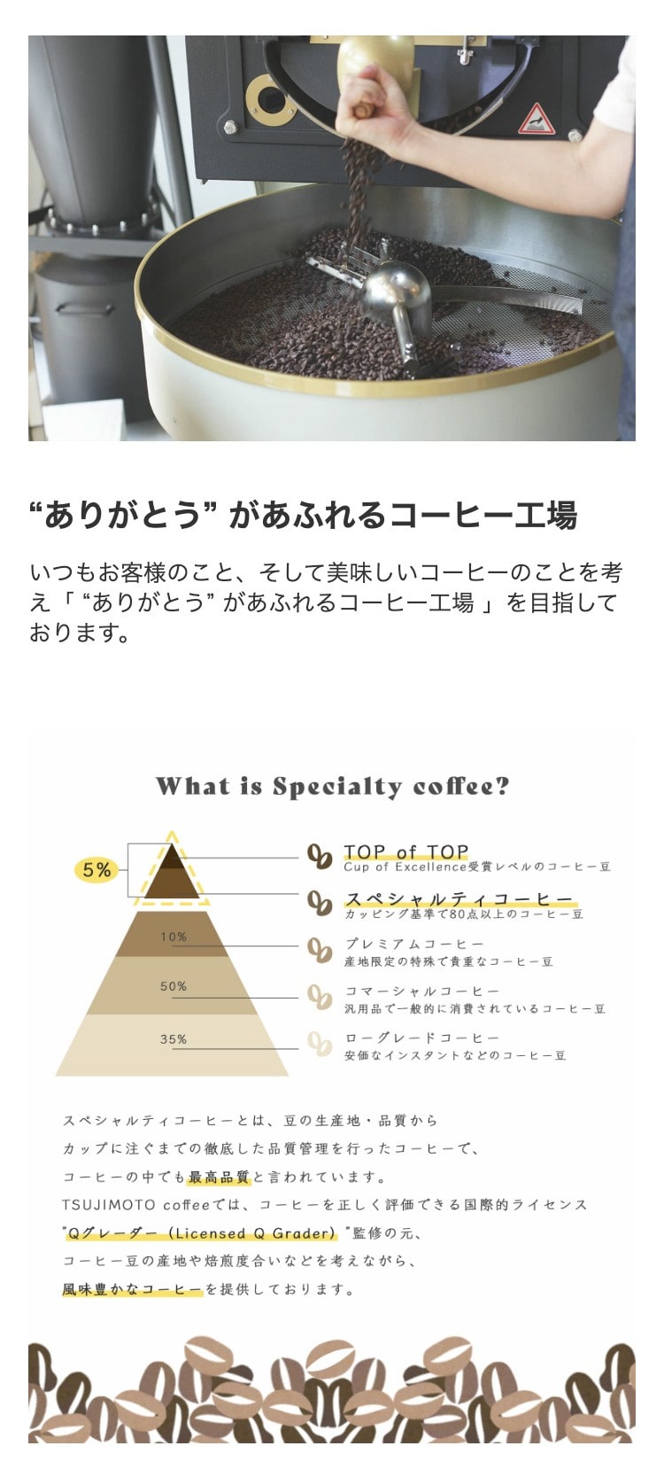 世界で活躍するスペシャルティコーヒーロースターが愛用する焙煎機によって素材本来の風味を大切に煎りあげ、挽きたてを皆さまのもとにお届けいたします。