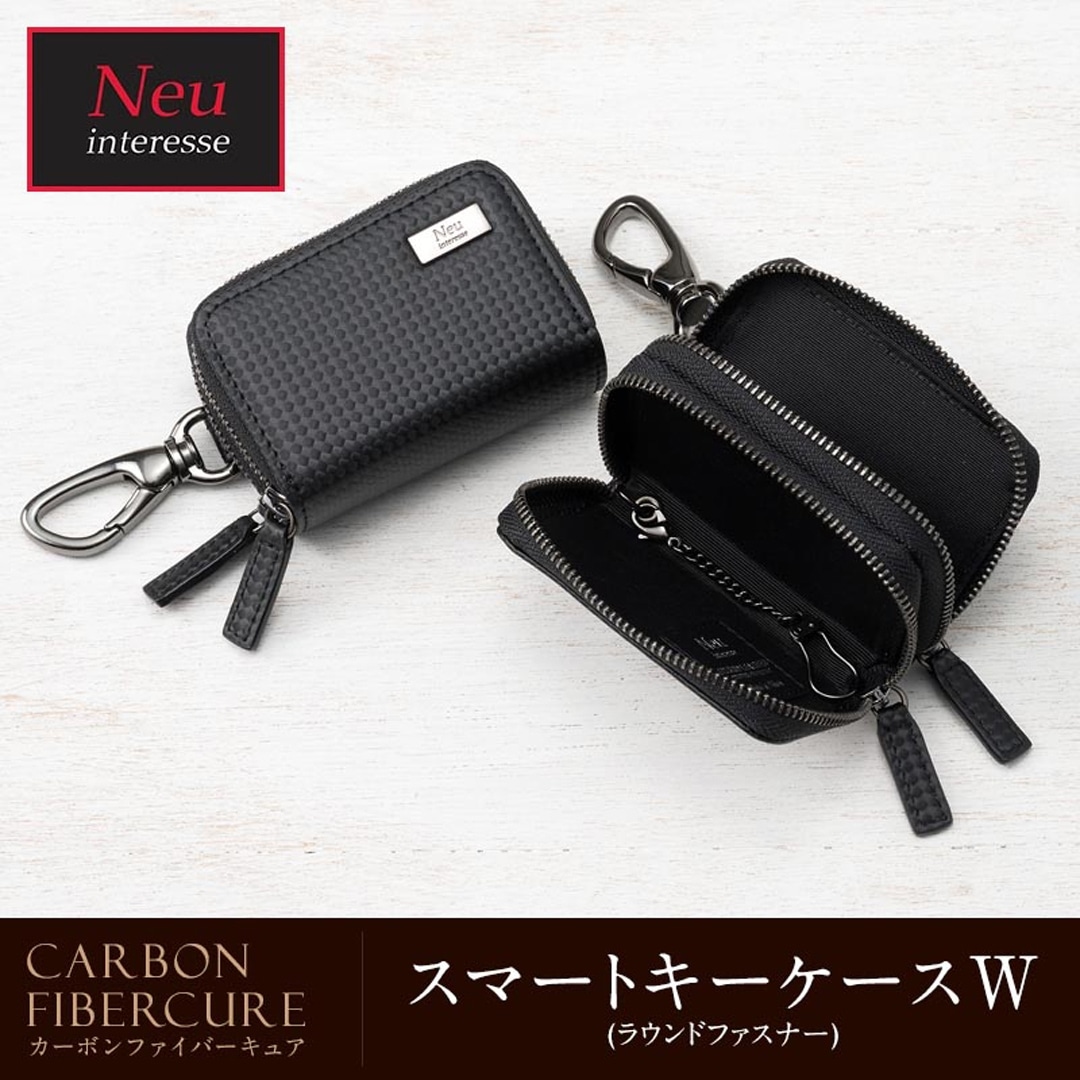- > スマートキーケース 2個収納 カーボンレザー 革 ノイインテレッセ Neu interesse カーボン ファイバーキュア ラウンドファスナー 3117