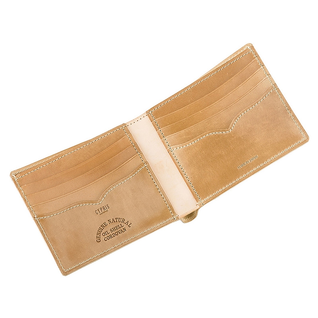 【キプリス】二つ折り財布(カード札入・小銭入れなし)■ナチュラルコードバン