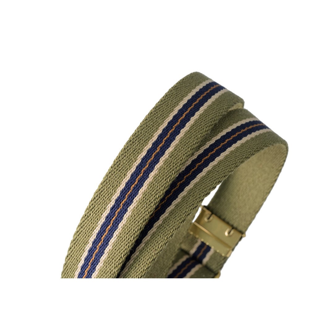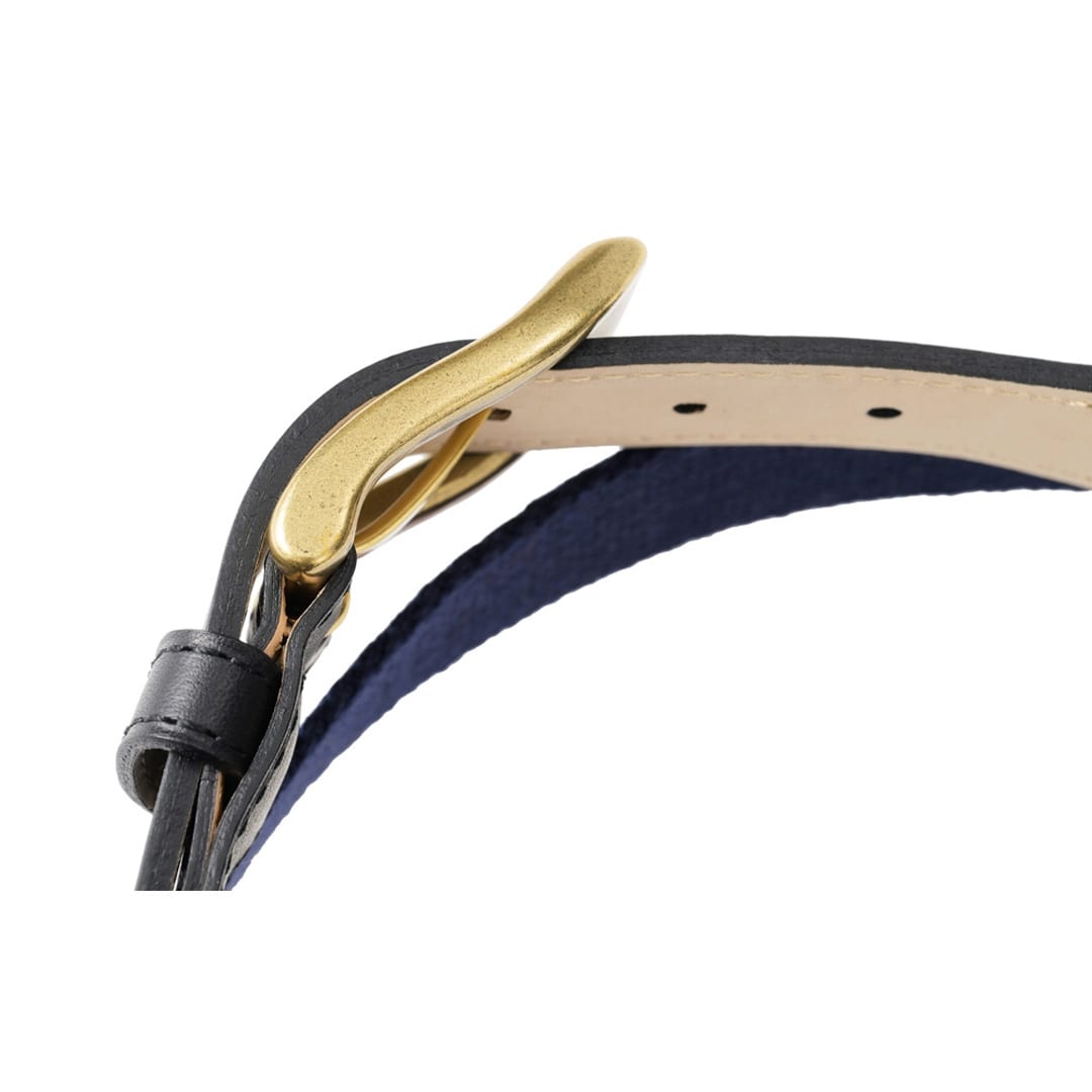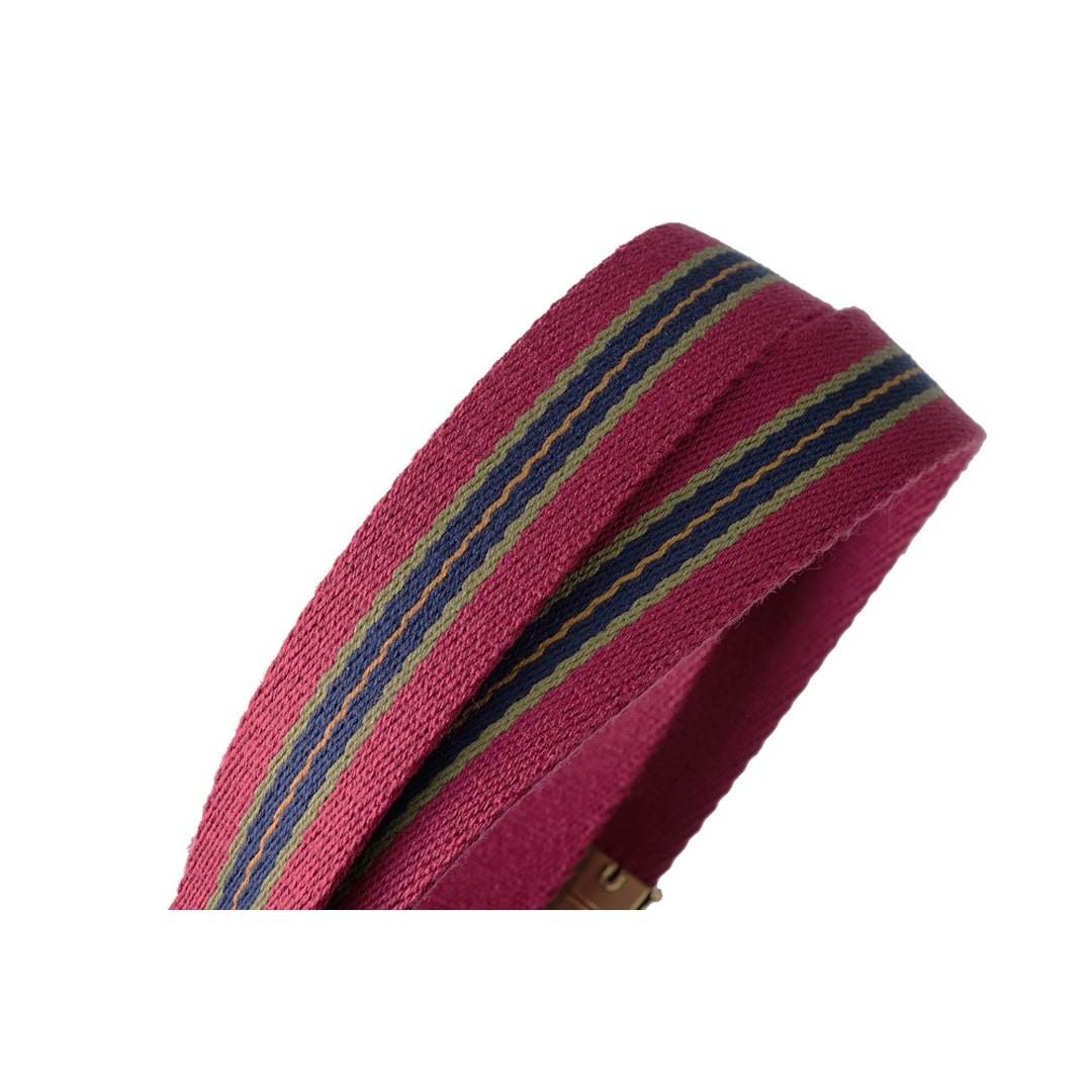 ストライプ柄のテープ帯にヌメ革の付属を組み合わせたデザインとなっており、革部分は使い込んでいく程に馴染み、経年変化を楽しめます。