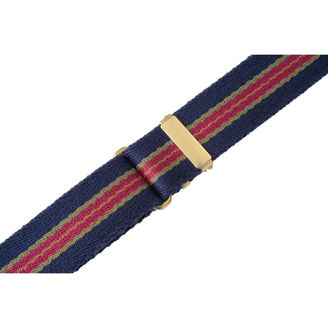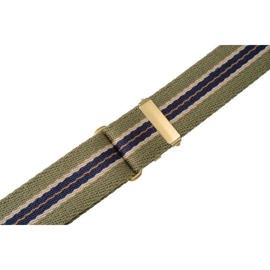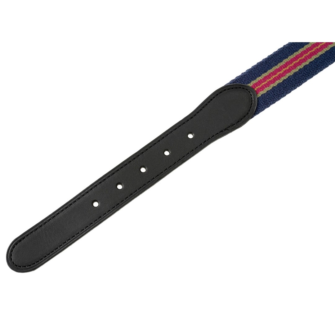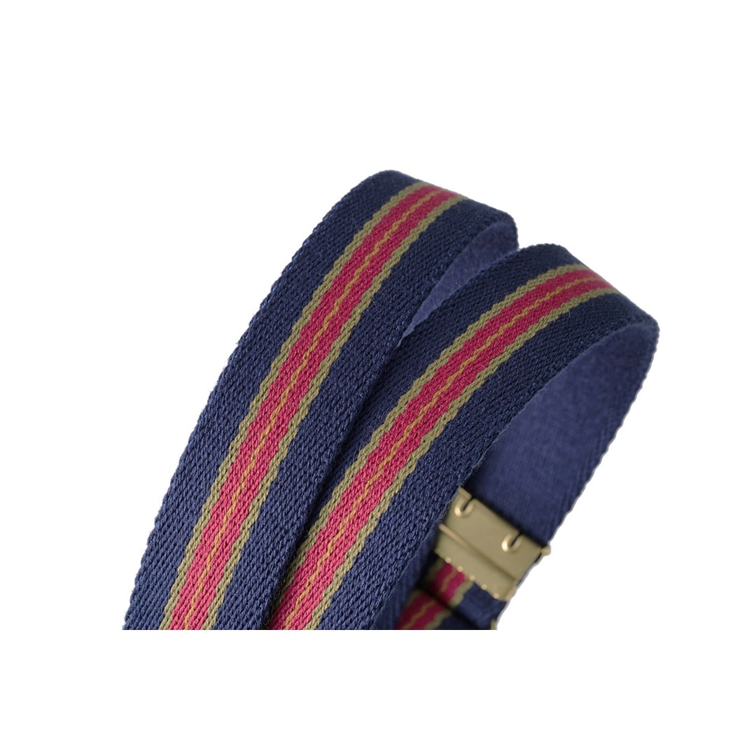 ストライプ柄のテープ帯にヌメ革の付属を組み合わせたデザインとなっており、革部分は使い込んでいく程に馴染み、経年変化を楽しめます。