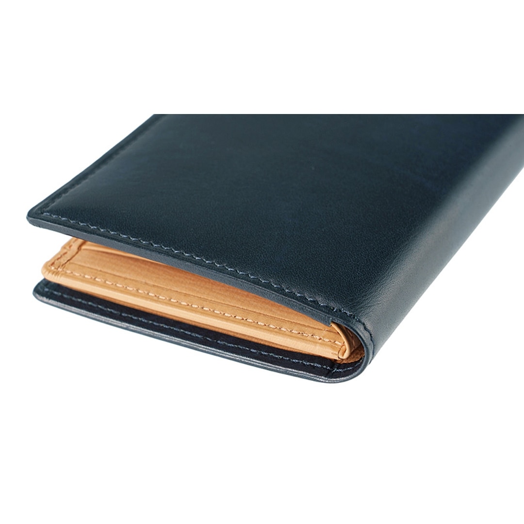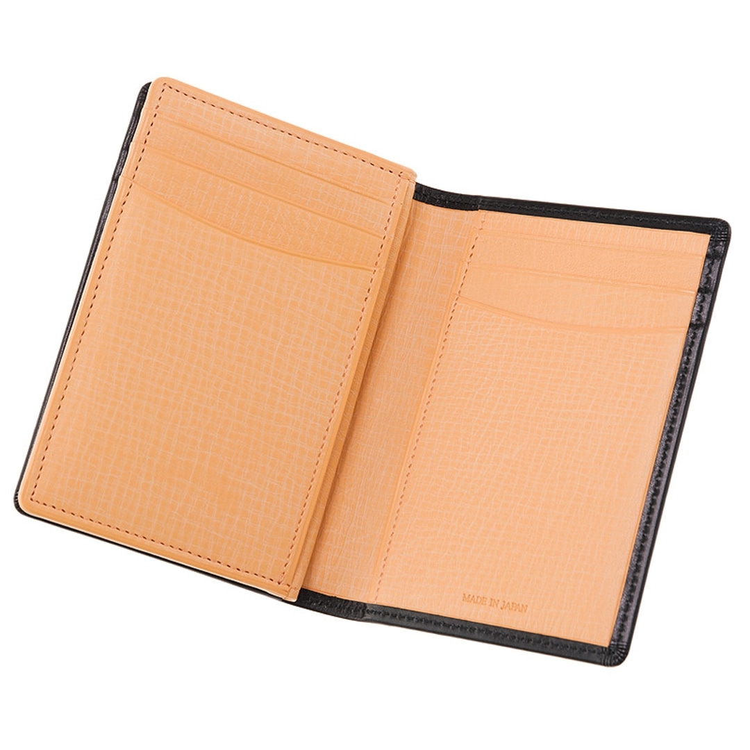 内面にはロウ引き加工したヌメ革をあわせたコンビネーションの美しい革小物です。