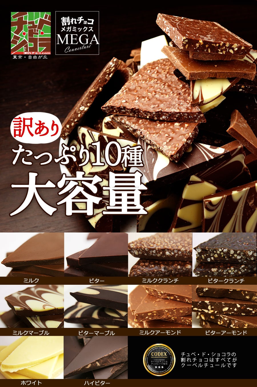 チュベ・ド・ショコラ史上最大級の大容量!どっかーんとメガミックス!10種類の定番チョコがなんと10種類が入って大ボリューム!ますます色々な味が楽しめるようになりました!※こちらの商品は大型の商品となりますためラッピングは承る事ができかねます。