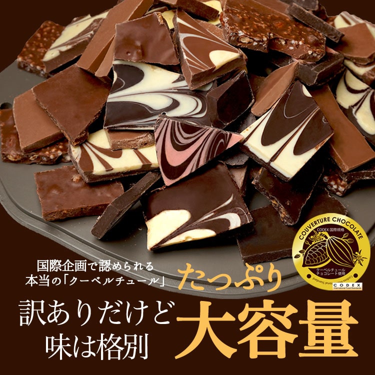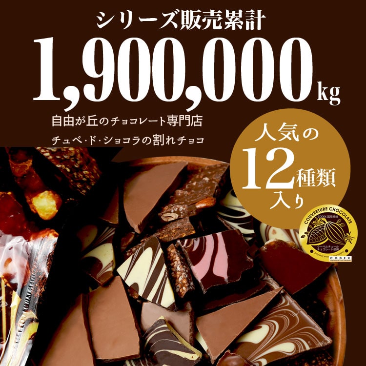 チュベ・ド・ショコラの人気割れチョコ12種セットです! 雑誌やテレビでも大注目の東京自由が丘「チュベ・ド・ショコラ」の割れチョコが12種類も詰まった訳ありセット。キズ、小さいかけらも含む訳あり品ですが、1Kgの大容量でとってもお得!お試しにも、お友達とのパーティーにも! ミルク系の種類の分量が多い『ミルク多め』とビター系の種類の分量が多い『ビター多め』の2種類からお選びいただけます。