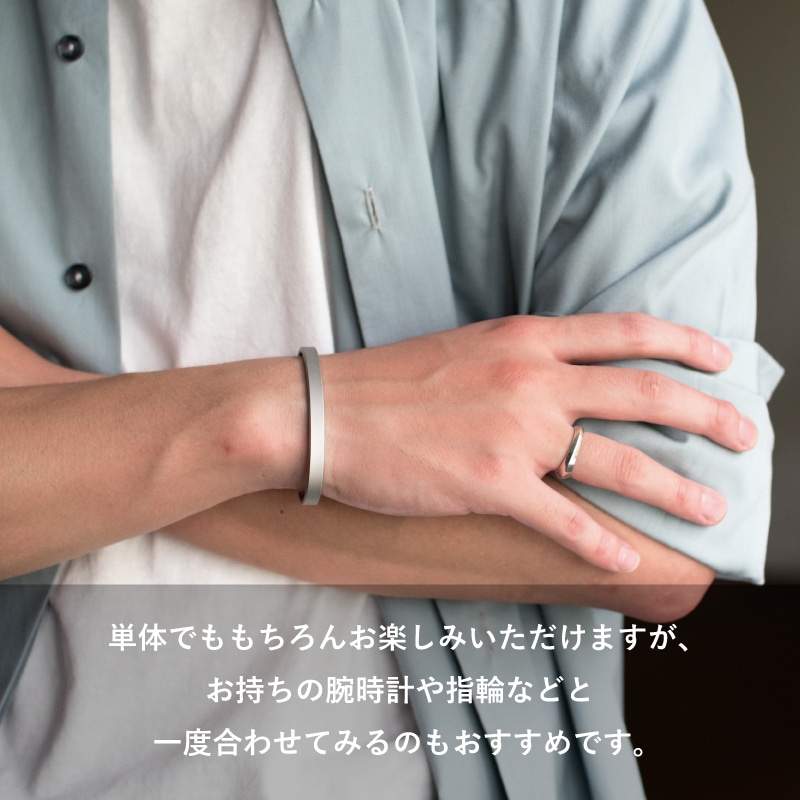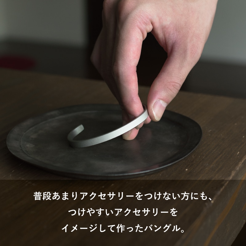普段あまりアクセサリーをつけない方にも、つけやすいアクセサリーをイメージして作ったバングル。 かどのとれた優しいフォルムと程よい光沢が、柔らかく上品な印象を与えてくれ、様々な日常の服装に馴染んでくれます