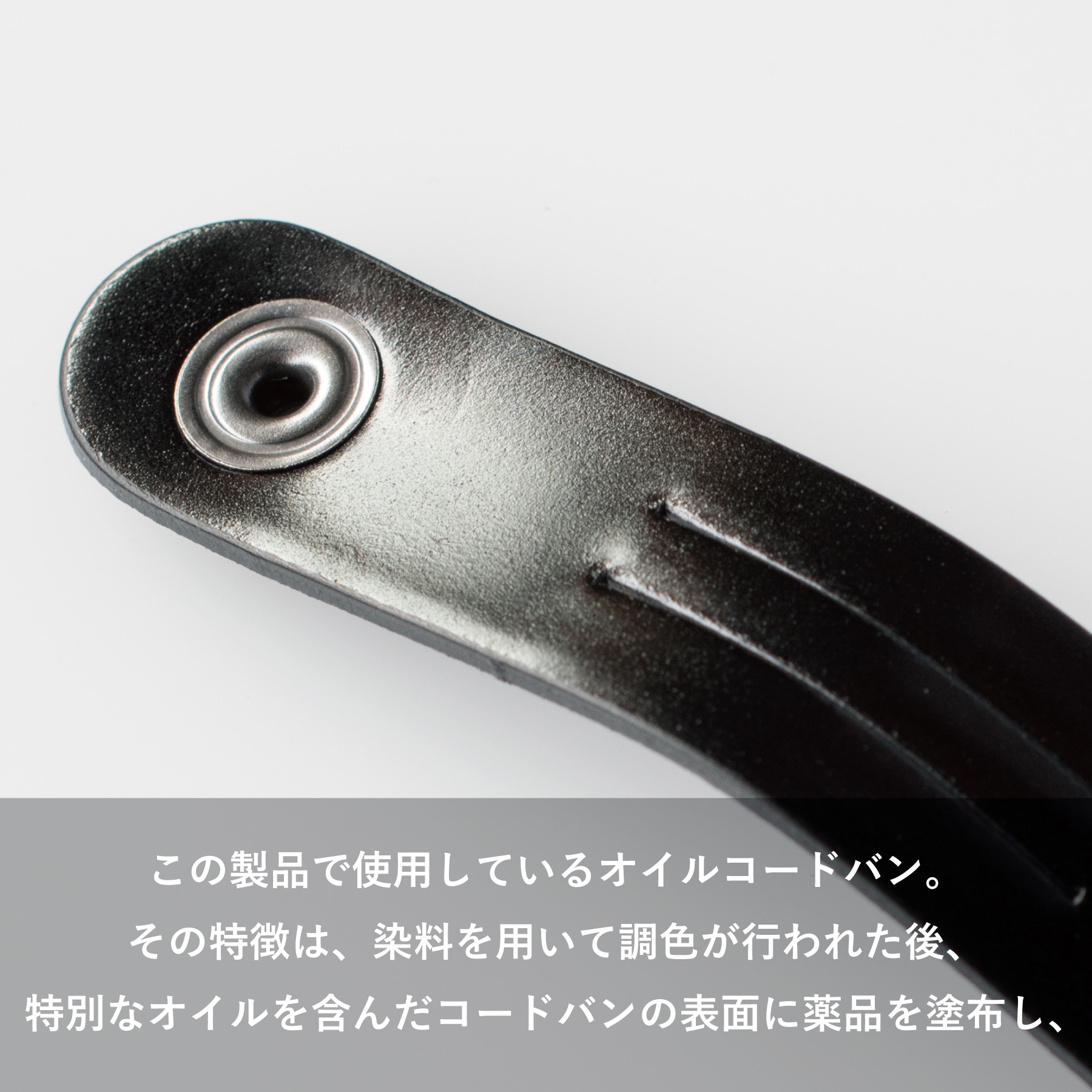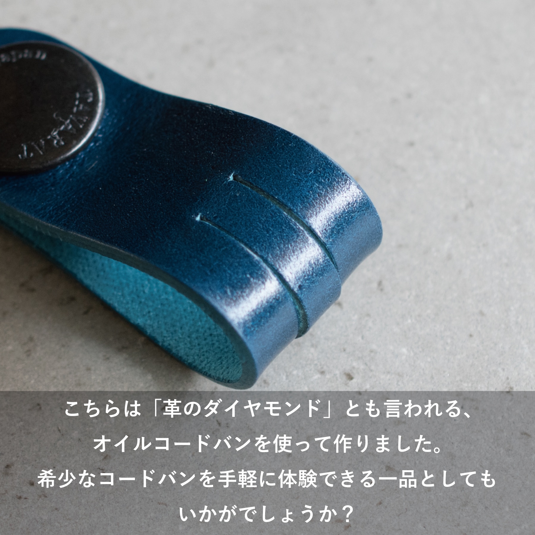 「革の王様」と呼ばれるコードバンを使用したコードクリップのロングサイズバージョン。 ガジェットのケーブルやイヤホンなどをカッコよくクリップできます。 一つ一つにこだわりぬいて完成した一品です。