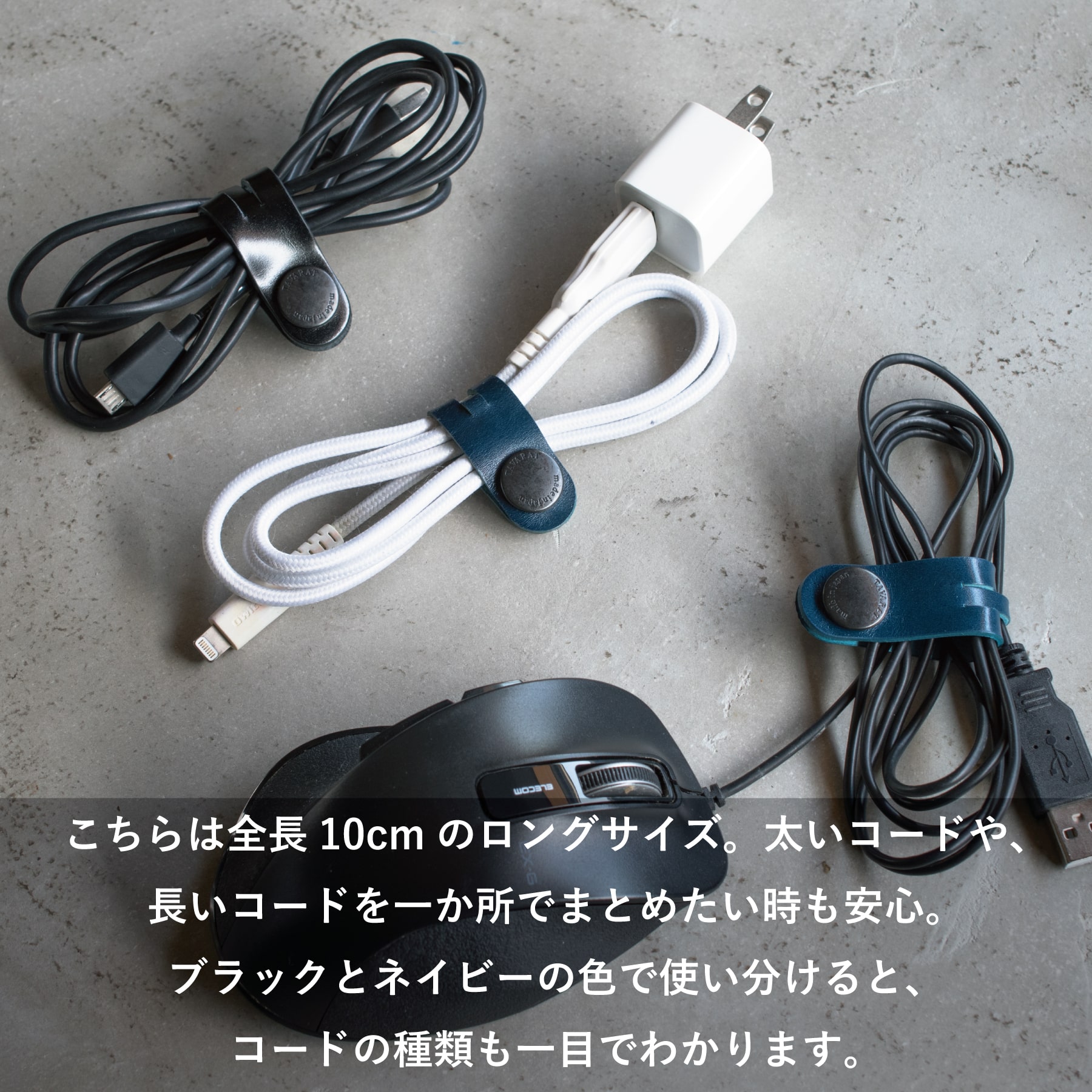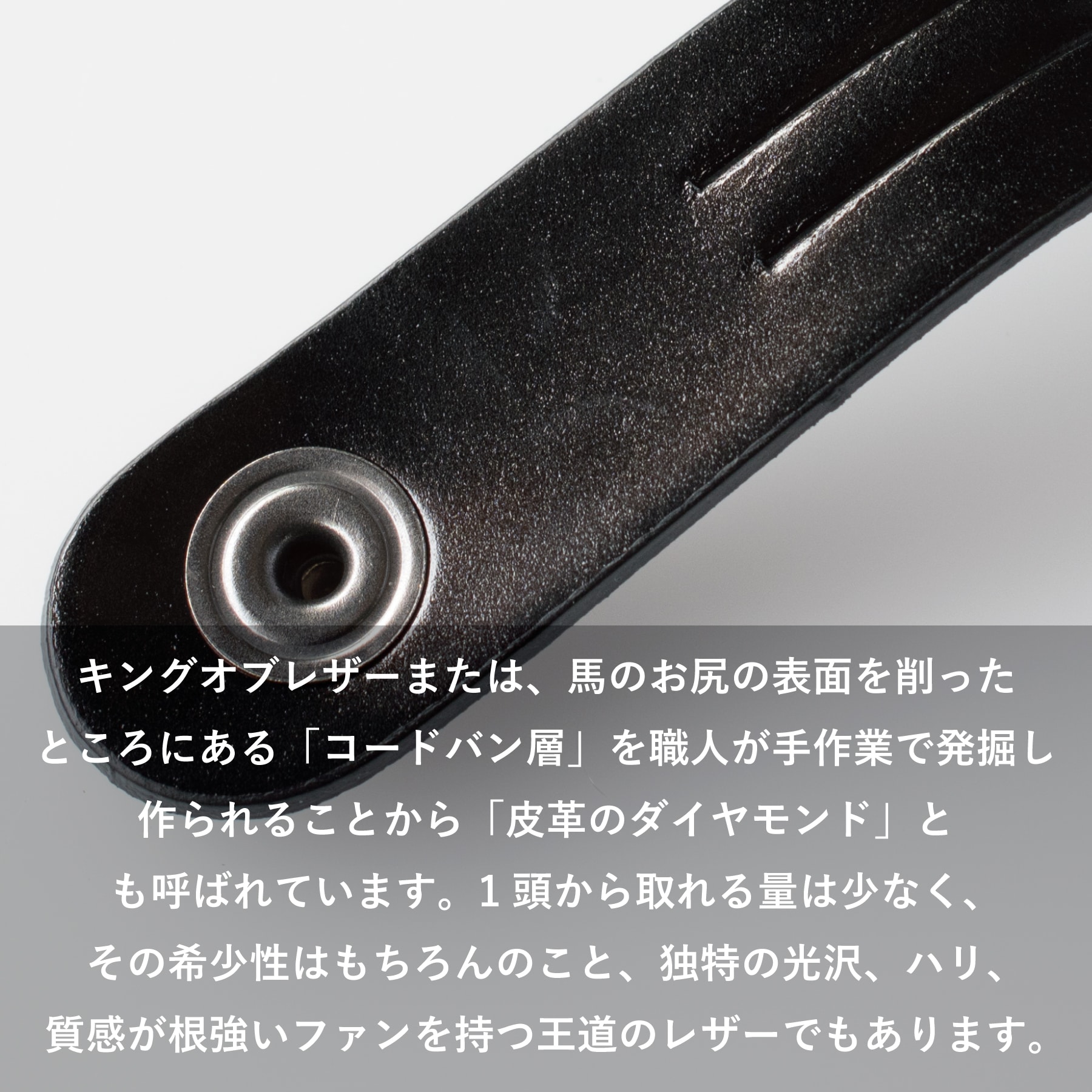 「革の王様」と呼ばれるコードバンを使用したコードクリップのロングサイズバージョン。 ガジェットのケーブルやイヤホンなどをカッコよくクリップできます。 一つ一つにこだわりぬいて完成した一品です。