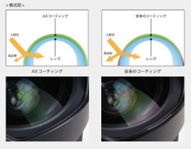 新開発AX(Anti-reflection eXpand)コーティングと、eBAND (Extended Bandwidth& Angular-Dependency) コーティング、BBAR (Broad-Band Anti-Reflection) コーティングとを組み合わせることで、周辺部までクリアな写りを実現しています。