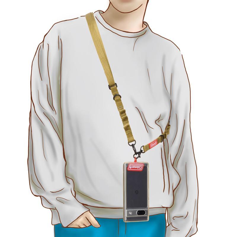 Colemanライセンスの多用途ストラップ「ハンギングストラップ」。スマホショルダーにも対応したスマートハンギングストラップ。 スリムな幅1.5cmのストラップに3 ヶ所のDリングと6 ヶ所のループを装備。カラビナ、鍵、ポーチなどが自由に取り付けられます。 付属のTPUシートでスマホショルダーに対応。 先端はデュアルフック仕様でスマホケースや小型ポーチのショルダーベルトとしてもご利用できます。 ストラップ長さ(約):97-148cm(長さ調整可能) 幅(約):1.5cm 製品重量(約):55g 主要材質:ナイロン、プラスチック、亜鉛合金 他 付属品:Colemanロゴ入りTPUシート TPUシートサイズ : W51×H21×D0.6mm TPU耐荷重 : 1kg