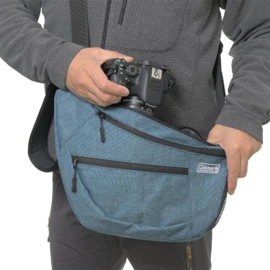 カメラバッグ離れした個性的なスタイルとリーズナブルな価格でご好評のコールマン・カメラショルダーバッグの最新作。多くのユーザー様からご要望を寄せられていたインナーボックスの容量が不足がちな点を解消すべく、クッションはインナーボックス式から本体との一体型に変更し、全体のサイズ感とデザインを損ねない範囲で、できる限り多くの内寸を確保しました。街にもフィールドにも!気軽にカメラを持ち出すのにピッタリです。 内寸(約) : H170XW240XD110mm 重量(約) : 320g 主要材質 : ポリエステル 他 中仕切 : 1枚付属 使用の目安 ・エントリー一眼レフまたはミラーレスカメラのダブルズームキット ・中級一眼レフ+高倍率ズーム ・フルサイズミラーレスカメラ+標準ズーム(最大)