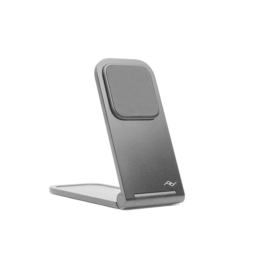 スマートなデザインでインテリアに馴染む、ワイヤレス充電スタンドです。 デスクやサイドテーブル、キッチンカウンターに置いても邪魔にならないスリムで美しいデザインが特徴です。 強力なマグネットでスマートフォンをしっかりと固定するので、充電されているかどうかを都度確認する必要がありません。 本体は頑丈なアルミニウム製で、使用場面に合わせてスタンドを最適な角度に調節したり、平らに折りたたむことができます。 ※ユニバーサルアダプターを取り付けた端末では、正常に充電ができない場合があります。 ※本製品にAC アダプターは付属しません。 サイズ :折り畳み時 H14.1 × W6.9 × D1.6cm 充電パッド部分 H5.5 × W5.5cm 重量 :本体 276.4g 充電用USB ケーブル 43.5g 同梱物 :充電用USB ケーブル(2m、C コネクタ - C コネクタ)、ケーブルマネジメント用クリップ × 3