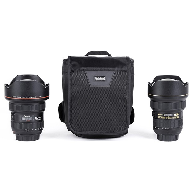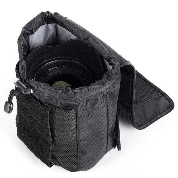 14-24mm F2.8、16-35mm F2.8 をそれぞれフードを順付けで収納できるポーチです。 消音パッチ、ハンドルが付いています。 内寸:H17.8 × W14 × D10.2 cm 200g( 全オプション装着時)