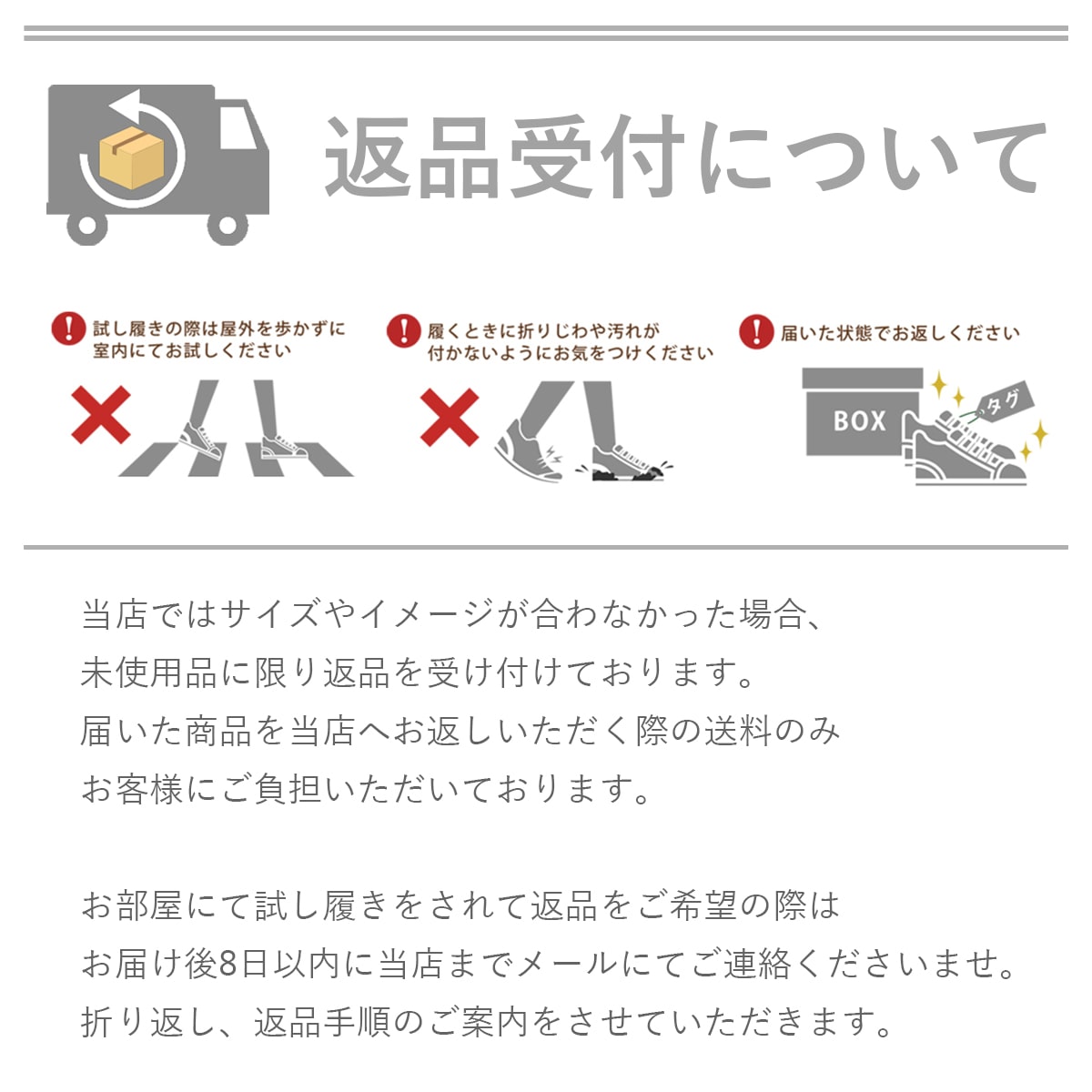 ・交換や返品は屋内での試し履きのみの状態のものに限り、承ります。