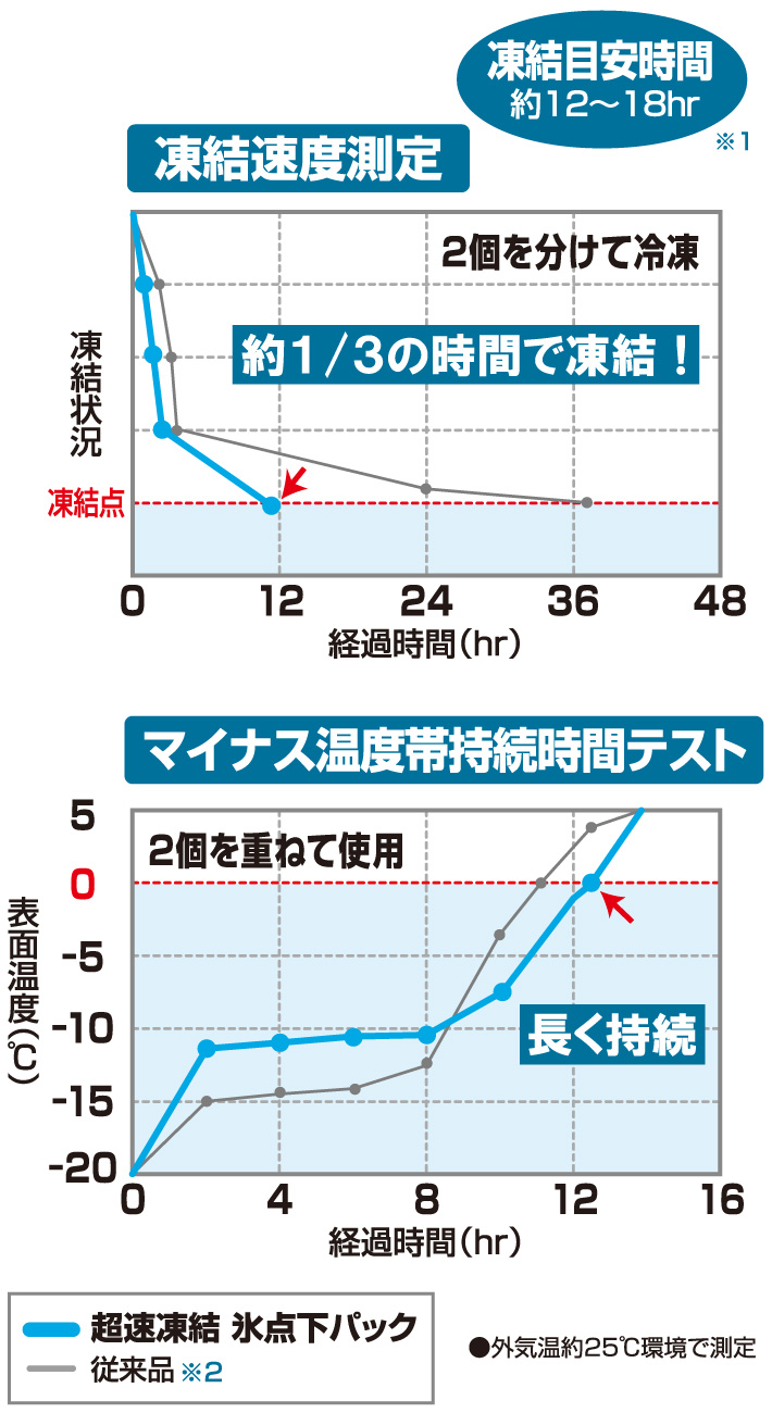 ※2)従来品「氷点下パック-16℃」(同等サイズ)と比較。