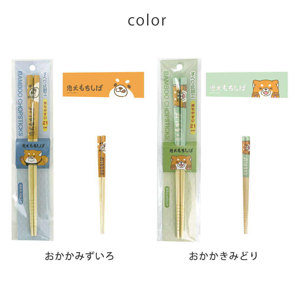 種類おかかみずいろ 16679/おかかきみどり 16680サイズ約H21cm材質表面塗装の種類:ウレタン塗装素地の種類:天然竹ブランド忠犬もちしば製造元エスケイジャパン生産国中国使用上の注意●火のそばに置かないでください。●ご使用後は早めにぬるま湯又は水で洗って、柔らかい布で拭き取ってください。●自動食器洗浄機、食器乾燥機は使用しないでください。※変形、破損の原因となります。●手洗いの際は、スポンジや柔らかい布に食器用中性洗剤をつけ、ぬるま湯で洗ってください。●たわし、みがき粉で磨かないでください。●アルカリ性洗剤、又はオレンジオイル系洗剤は図柄剥離、変色する事がありますので使用しないでください。●色の濃い食品及び合成着色料が使われている食品によって、お箸に色が付くことがありますが、品質には問題はありません。●ひび割れ、カケが発生した場合には直ちにご使用をおやめください。●沸騰消毒は変形することがありますので、しないでください。●電子レンジに入れて加熱しないでください。●落としたり、乱暴な扱いにより破損することがあります。・熱湯につけないでください。●直射日光を避けて保管してください。●つけ置き洗いはしないでください。●漂白剤のご使用はお避け下さい。●箸の先が細くなっていますので事故防止のためお子さまの手の届かない場所に保管し、ご使用の際はお子さまが誤った使い方をしないようにご注意ください。●誤った使用方法に起因する損害は一切補償いたしません。忠犬もちしばの竹箸に新しいデザインが登場