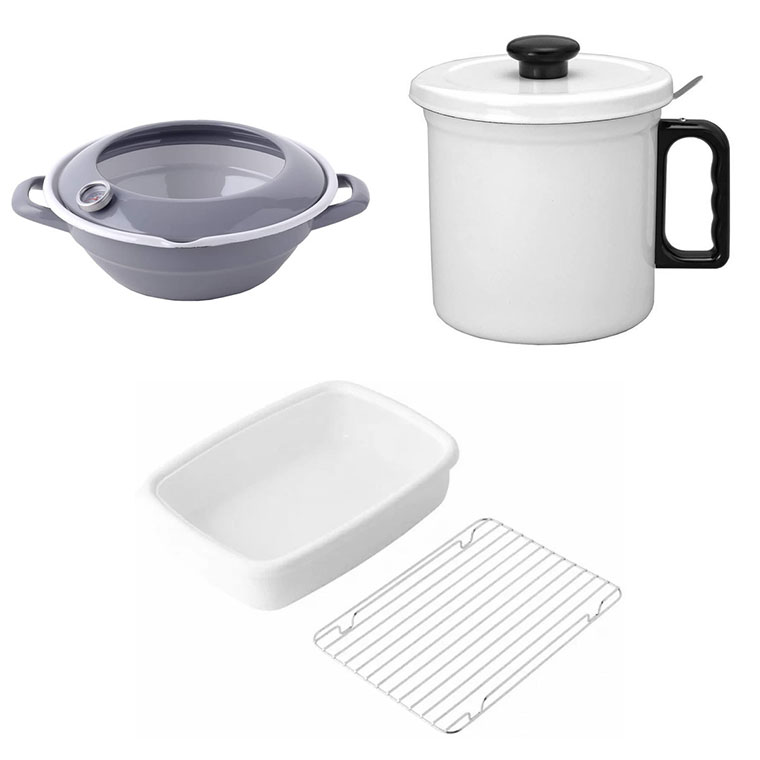 製造元富士ホーロー対応熱源(天ぷら鍋)ガスコンロ(直火)、IH(200V)、シーズ、ハロゲン、エンクロ、ラジエント※IH調理器の揚げ物モードではご使用いただけません。ホーローについて●手作業で釉薬を掛けるため、ひとつひとつの表情には多少の個体差が生じます。●ホーローの性質上、黒点や色むらの様に見える部位が生じる場合がございます。●縁や取っ手の裏側等は鋼板の切り口となるため、釉薬がかかりにくく下地の黒いスジが多少見られます。黒い部分もホーロー加工が施されております。※上記の様な場合でも不良ではなくご使用には問題ございませんので安心してお使い下さい。各商品ページ備考●富士ホーロー タイ工場製●食洗機、電子レンジ使用不可●天ぷら鍋はIH調理器の揚げ物モードではご使用いただけません。●日本琺瑯工業会認定Sマーク取得家庭で天ぷら調理がすぐに始められる「ホーロー天ぷら調理セット」油はね防止フード付きのホーロー製天ぷら鍋。温度計が付いているので、揚げ時が一目で分かります。調理面が白く、食材や油の色の変化が分かりやすいので調理しやすいのもポイントです。油はねを抑え、汚れもつるりと落ちるので、後片付けが簡単です。活性炭カートリッジ付きのホーロー製オイルポット。活性炭の力が油の汚れやにおいを吸着して、キレイにろ過します。油を繰り返し使えて、環境にもやさしくとても経済的です。(カートリッジ1個の使用目安は約10回)ホーロー製なので、腐食に強く、丈夫で長持ちします。網と蓋が付いたホーローバット。バットとして下ごしらえに使ったり、アミをセットして揚げ物バットに、蓋をすれば保存もできます。ホーロー製なので、熱に強く、直火やオーブン調理にも使えます。
