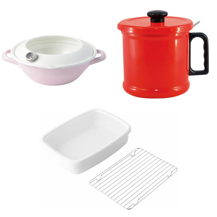製造元富士ホーロー対応熱源(天ぷら鍋)ガスコンロ(直火)、IH(200V)、シーズ、ハロゲン、エンクロ、ラジエント※IH調理器の揚げ物モードではご使用いただけません。ホーローについて●手作業で釉薬を掛けるため、ひとつひとつの表情には多少の個体差が生じます。●ホーローの性質上、黒点や色むらの様に見える部位が生じる場合がございます。●縁や取っ手の裏側等は鋼板の切り口となるため、釉薬がかかりにくく下地の黒いスジが多少見られます。黒い部分もホーロー加工が施されております。※上記の様な場合でも不良ではなくご使用には問題ございませんので安心してお使い下さい。各商品ページ備考●富士ホーロー タイ工場製●食洗機、電子レンジ使用不可●天ぷら鍋はIH調理器の揚げ物モードではご使用いただけません。●日本琺瑯工業会認定Sマーク取得家庭で天ぷら調理がすぐに始められる「ホーロー天ぷら調理セット」油はね防止フード付きのホーロー製天ぷら鍋。温度計が付いているので、揚げ時が一目で分かります。調理面が白く、食材や油の色の変化が分かりやすいので調理しやすいのもポイントです。油はねを抑え、汚れもつるりと落ちるので、後片付けが簡単です。活性炭カートリッジ付きのホーロー製オイルポット。活性炭の力が油の汚れやにおいを吸着して、キレイにろ過します。油を繰り返し使えて、環境にもやさしくとても経済的です。(カートリッジ1個の使用目安は約10回)ホーロー製なので、腐食に強く、丈夫で長持ちします。網と蓋が付いたホーローバット。バットとして下ごしらえに使ったり、アミをセットして揚げ物バットに、蓋をすれば保存もできます。ホーロー製なので、熱に強く、直火やオーブン調理にも使えます。 セット内容1.富士ホーロー 天ぷら鍋 × 1個「本体+取っ手」32 × 「最大径」26.5 × 「高さ」10.5cm「満水容量」2.8L、「適正油量」1.0L2.富士ホーロー オイルポット × 1個「本体+取っ手」約21.0 × 「最大径」15.5 × 「つまみまでの高さ」17.5cm「実用容量」約1.5L3.富士ホーロー 網付きホーロー容器「たて」23.5 × 「よこ」17.0 × 「高さ」5.5cm(蓋を含む) 「満水容量」約1.6L商品説明家庭で天ぷら調理がすぐに始められる「ホーロー天ぷら調理セット」調理から油の処理、食材の保存までをカバーする調理器具を集めました。すべて本体はホーロー製なので、油汚れもつるりと落ちて後片付けが楽ちんです。単品で買うより総額1,000円お買い得です。カラーも選べるのでキッチンに合わせて、お好みのコーディネートをお楽しみください。製造元対応熱源(天ぷら鍋)ガスコンロ(直火)、IH(200V)、シーズ、ハロゲン、エンクロ、ラジエント※IH調理器の揚げ物モードではご使用いただけません。ホーローについて●手作業で釉薬を掛けるため、ひとつひとつの表情には多少の個体差が生じます。●ホーローの性質上、黒点や色むらの様に見える部位が生じる場合がございます。●縁や取っ手の裏側等は鋼板の切り口となるため、釉薬がかかりにくく下地の黒いスジが多少見られます。黒い部分もホーロー加工が施されております。※上記の様な場合でも不良ではなくご使用には問題ございませんので安心してお使い下さい。各商品ページ備考●富士ホーロー タイ工場製●食洗機、電子レンジ使用不可●天ぷら鍋はIH調理器の揚げ物モードではご使用いただけません。●日本琺瑯工業会認定Sマーク取得 カラー ピンク-オイルポット レッド-オイルポット ホワイト-オイルポット 選択されたカラー:レッド-オイルポット ライトグレー-天ぷら鍋 : ピンク-オイルポット ¥9,500税込 獲得マイル: --- (還元率: --- 倍) 在庫数: 残りわずか 1 カートに入れる カートに入れました 購入手続きへ お買い物を続ける スモークブルー-天ぷら鍋 : ピンク-オイルポット ¥9,500税込 獲得マイル: --- (還元率: --- 倍) 入荷案内申し込み カートに入れました 購入手続きへ お買い物を続ける ブラック-天ぷら鍋 : ピンク-オイルポット ¥9,500税込 獲得マイル: --- (還元率: --- 倍) 入荷案内申し込み カートに入れました 購入手続きへ お買い物を続ける ホワイト-天ぷら鍋 : ピンク-オイルポット ¥9,500税込 獲得マイル: --- (還元率: --- 倍) 入荷案内申し込み カートに入れました 購入手続きへ お買い物を続ける ピンク-天ぷら鍋 : ピンク-オイルポット ¥9,500税込 獲得マイル: --- (還元率: --- 倍) 在庫数: 残りわずか 1 カートに入れる カートに入れました 購入手続きへ お買い物を続ける レッド-天ぷら鍋 : ピンク-オイルポット ¥9,500税込 獲得マイル: --- (還元率: --- 倍) 入荷案内申し込み カートに入れました 購入手続きへ お買い物を続ける ライトグレー-天ぷら鍋 : レッド-オイルポット ¥9,500税込 獲得マイル: --- (還元率: --- 倍) 123 カートに入れる カートに入れました 購入手続きへ お買い物を続ける スモークブルー-天ぷら鍋 : レッド-オイルポット ¥9,500税込 獲得マイル: --- (還元率: --- 倍) 在庫数: 残りわずか 1 カートに入れる カートに入れま