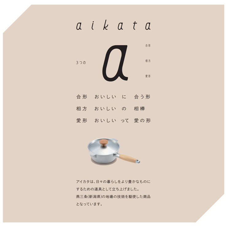 サイズ約幅193×全長315×高さ90mm重量約452g満水容量1400ml材質本体:18-0ステンレス(1.0mm)ハンドル:天然木(ブナ材)、アルミ合金、18-8ステンレスパッキン:シリコーンゴム(ハンドル内部水侵入防止用)対応熱源ガス火、IH、シーズヒーター、ハロゲンヒーター、エンクロヒーター、ラジエントヒーターブランドアイカタ製造元ヨシカワ生産国日本(新潟県燕市)備考電子レンジ、食洗機使用不可1~2人用の調理にちょうど良い小振りな16cmのミルクパンスープやソース作り、ゆで物など万能にお使いいただけます。お子様の離乳食作りやお弁当作りにも重宝します。アイカタ独自の口形状は注ぐ時に横からこぼれたり、垂れたりしないので、きれいに注ぐことができます。汁もの、煮物の移し替えなどにとても便利です。握りやすいカーブに設計された木製のハンドルは、手になじみやすく、優しい温もり。ステンレス+木の風合いがお互いの質感を魅力的に引き立てます。専用蓋があれば調理の幅が広がります。蓋をスライドさせれば蒸気を逃がすことができ、吹きこぼれを防止できます。
