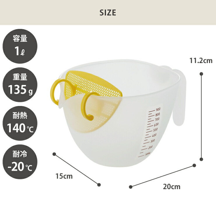 サイズ約148×200×122mm重量約115g材質ポリプロピレン(耐熱温度140℃/耐冷温度-20℃)製造元曙産業生産国日本備考食洗機対応「混ぜる」「こす」「注ぐ」がひとつでできるたまごこしボウルこしたり、器に入れたりが面倒な茶碗蒸しも。これなら「混ぜる」「こす」「注ぐ」がひとつでできる!調理ボウルとしても使用できます。毎日のたまご料理をおいしく簡単に!