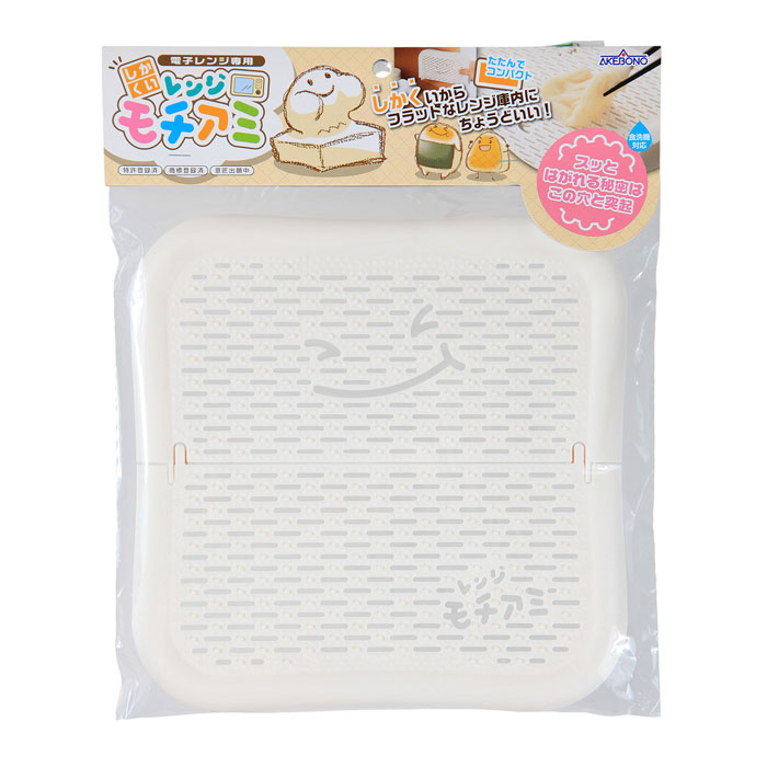 サイズ214×214×20mm材質ポリプロピレン(耐熱温度120℃/耐冷温度-20℃)製造元曙産業備考●日本製●食洗機、乾燥機使用可 ●しかくいレンジモチアミ RE1504お餅・解凍調理とそつなくこなす万能アミ電子レンジでアッという間にふっくらおもちが調理できます。表面はダブルエンボス加工でくっつきません。フラットな電子レンジ庫内にちょうどよい、しかくいモチアミです。大きく使えて、サッと小さくしまえる折りたたみタイプ。立てて収納できるので場所をとりません。おもち以外にも、焼きおにぎりやたこ焼きなど冷凍食品の解凍にも便利です。1.お餅を水にくぐらせ、モチアミの上に置きます。2.そのまま電子レンジに入れ、加熱します。3.つきたてのようなお餅の出来上がり。