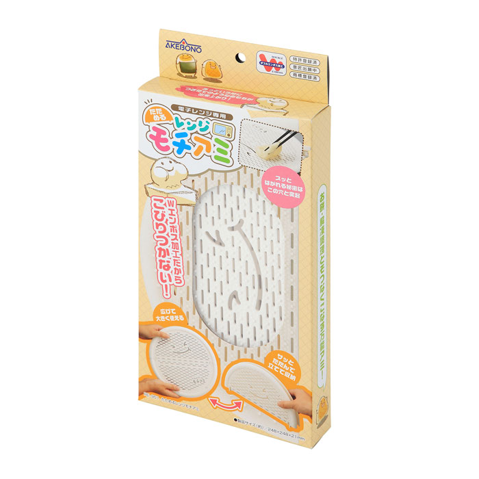 サイズ使用時:247×247×21mm折畳時:247×133×25mm材質ポリプロピレン(耐熱温度120℃/耐冷温度-20℃)製造元曙産業備考●日本製●食洗機、乾燥機使用可 ●たためるレンジモチアミ RE951お餅・解凍調理とそつなくこなす万能アミ電子レンジでアッという間にふっくらおもちが調理できます。表面はダブルエンボス加工でくっつきません。大きく使えて、サッと小さくしまえる折りたたみタイプ。立てて収納できるので場所をとりません。おもち以外にも、焼きおにぎりやたこ焼きなど冷凍食品の解凍にも便利です。1.お餅を水にくぐらせ、モチアミの上に置きます。2.そのまま電子レンジに入れ、加熱します。3.つきたてのようなお餅の出来上がり。