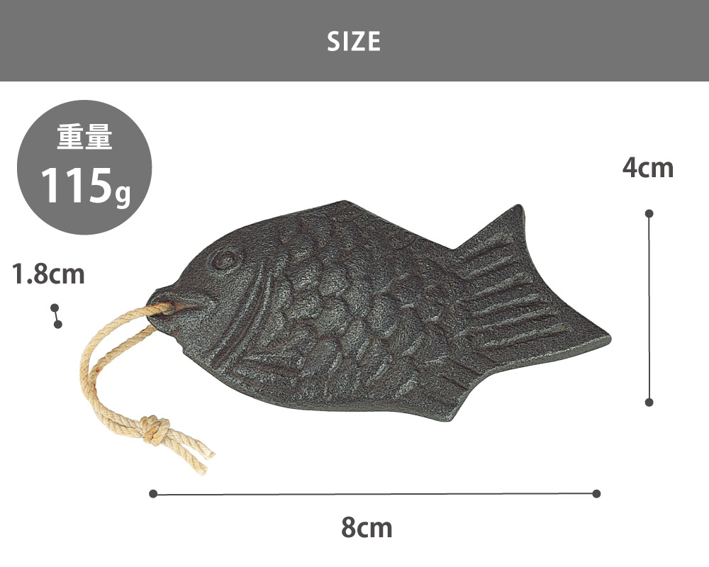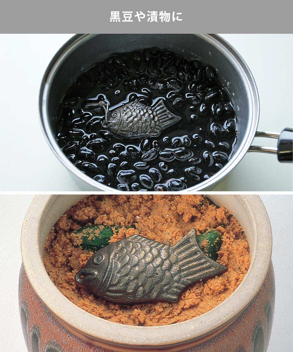 サイズ約幅4×奥行8×高さ1.8cm重量約115g材質本体:鉄鋳物ヒモ:綿製造元AUX生産国日本備考○使用後は容器ややかんから取り出してください。○食器洗い乾燥機 不可黒豆やなす漬の色づけ、貝の砂出しに黒豆やなす漬の色づけ、貝の砂出しに。水に溶けやすい色素が鉄イオンと結合して溶けにくくなり、色鮮やかに仕上がります。炊飯器に入れてご飯を炊いてもOK。やかんに入れてお湯を沸かせば鉄分が溶け出し、鉄分補給ができます。