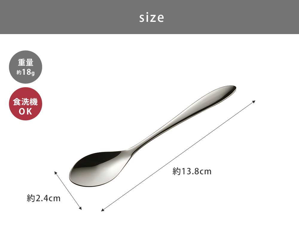 サイズ約 全長13.8 × 幅2.4cm重量約18g(1本)材質ステンレス鋼(クロム18%、ニッケル8%)製造元AUX生産国日本備考○食器洗い乾燥機可口からスッと抜けて、口あたりなめらかなスプーン3本組口からスッと抜けて、口あたりなめらかなスプーン3本組。薄く平らな形で、デザートのなめらかな食感を損ないません。プリンやヨーグルトなどなめらか食感のデザートにぴったり。平らな形状なので、口からスッと抜けてスプーンに食べ物が残りにくいです。Sales points●薄く平らな形で、なめらかな口あたりのスプーン。●デザートのなめらかな食感を損ないません。●平らな形状なので、口からスッと抜けてスプーンに食べ物が残りにくい。●金属加工の町「新潟県燕三条」の職人が一本一本、丁寧に仕上げています。