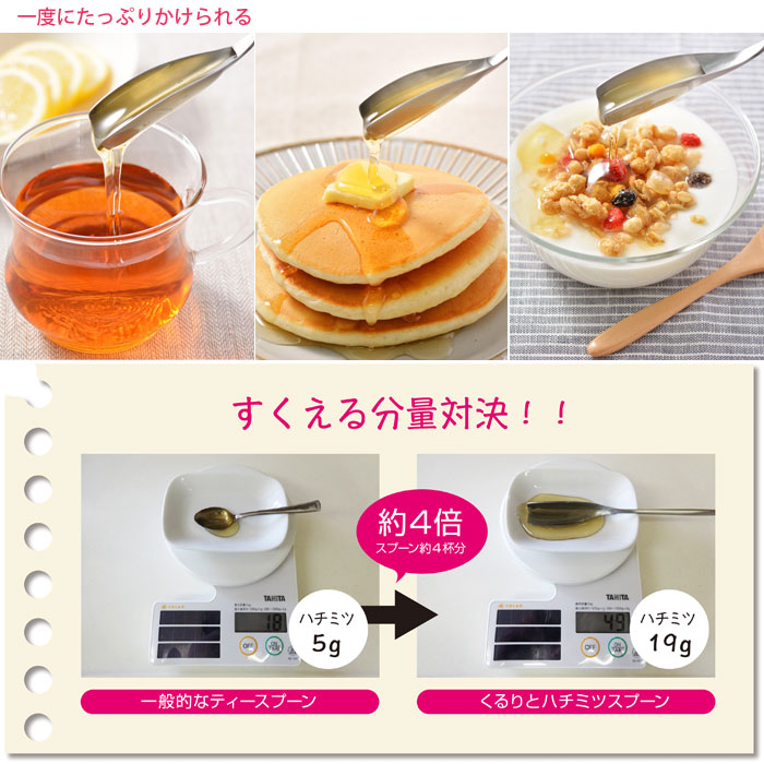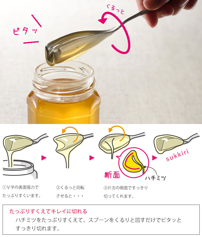 サイズ約 全長18×幅2cm材質ステンレス鋼(クロム18%)重量約30g商品説明たっぷりすくえてキレイにきれるハチミツをたっぷりすくえて、スプーンをくるりと回すだけでピタッとすっきり切れます。たっぷりすくえるようにこだわりのV字の角度と大きさ。V字で縦に長いので1回でたっぷりすくえます。ティースプーン約5gに対して、約19gの大容量をすくえます。特長●ハチミツをすくってくるりと回すと、垂れずにピタッと止まります。●一度でたっぷりとかけられます。パンケーキやハチミツトーストなどに。●ビンの底にたまったハチミツもすくいやすい。●ステンレス一体成型の、シンプルな形状で洗いやすい。ブランドleyeメーカーAUX備考●日本製●食洗機可レイエ くるりとハチミツスプーン LS1523
