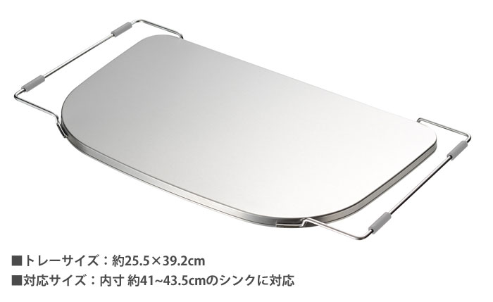 サイズ約 幅25.9×奥行45.4×高さ2.1cm(脚ゴム部含む)トレーサイズ:約 幅25.5×奥行39.2cm材質トレー:18-0ステンレスハンドル:18-8ステンレス脚ゴム:合成ゴム対応サイズ使用可能なシンクの奥行内寸:約39.5~44cm(伸縮しません)耐荷重約5kg重量約510g商品説明シンクに設置することでスペースが広がり、キッチンを広く使えます。シンクのコーナーにフィットする角丸形状。まな板受けとしても使えます。ブランドleyeメーカーAUX備考日本製レイエ 調理スペースが広がるトレー LS1537