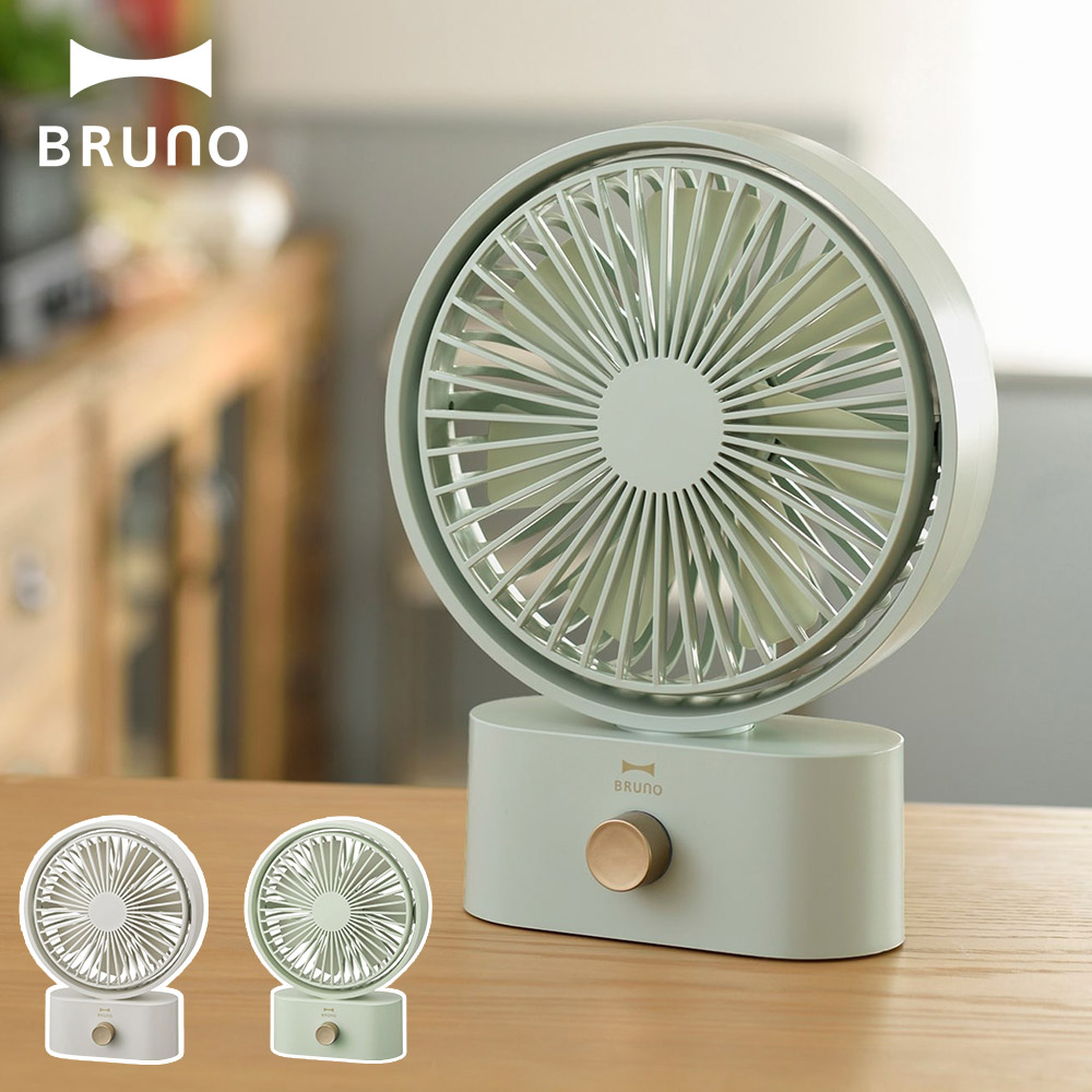 サイズ約W17.1xD7.2xH22.8cm重量約455g材質本体:ABS樹脂、ポリカーボネート羽根:ポリプロピレンコード長約1m入力DC5V 1A Max.(USB充電式)充電時間約3.5時間(入力 5V1Aの場合)連続使用時間最小風量時:約4時間最大風量時:約1.5時間機能風量10段階切替左右自動首振り機能(90°)上下手動首振り機能(60°)付属品USBケーブルブランドBRUNO(ブルーノ)生産国中国場所を選ばずすっきり設置できるコンパクトな充電式卓上扇風機「心地よい涼しさ」を持ち運びコンパクトなUSB充電式扇風機。風量は選べる10段階切り替え&首振り機能付きで、シーンや気温に合わせて広範囲に涼しい風をお届けします。デスクやキッチンなど室内だけでなく、アウトドアでも大活躍。インテリアにすっとなじむ、洗練されたワンカラーがポイントです。
