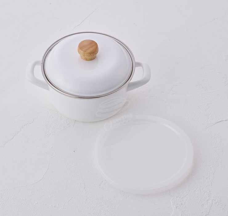 サイズ(約)W 22×16.5×13cm底面径 14.5cm内径 15cm満水容量1.4L重量約620g材質本体:ほうろう用鋼板,ステンレス、ポリ蓋:ポリプロピレン対応熱源ガスコンロ(直火)・IH(100V/200V)・シーズ・ハロゲン・ラジエント(本体のみオーブン調理可)製造元富士ホーロー備考●タイ工場製(富士ホーロー 自社工場)●電子レンジ使用不可●日本琺瑯工業会認定S(200V IH)マーク取得ホーローについて●手作業で釉薬を掛けるため、ひとつひとつの表情には多少の個体差が生じます。●ホーローの性質上、焼成時に黒点や色むらの様に見える部位が生じる場合がございます。●鋼板の切り口となる部分は釉薬がかかりにくく、下地の黒いスジが多少見られますが黒い部分もホーロー加工が施されております。※上記の様な場合でも不良ではなくご使用には問題ございませんので安心してお使い下さい。サイズ(約)W 22×16.5×13cm底面径 14.5cm内径 15cm満水容量1.4L重量約620g材質本体:ほうろう用鋼板,ステンレス、ポリ蓋:ポリプロピレン対応熱源ガスコンロ(直火)・IH(100V/200V)・シーズ・ハロゲン・ラジエント(本体のみオーブン調理可)製造元富士ホーロー備考●タイ工場製(富士ホーロー 自社工場)●電子レンジ使用不可●日本琺瑯工業会認定S(200V IH)マーク取得ホーローについて●手作業で釉薬を掛けるため、ひとつひとつの表情には多少の個体差が生じます。●ホーローの性質上、焼成時に黒点や色むらの様に見える部位が生じる場合がございます。●鋼板の切り口となる部分は釉薬がかかりにくく、下地の黒いスジが多少見られますが黒い部分もホーロー加工が施されております。※上記の様な場合でも不良ではなくご使用には問題ございませんので安心してお使い下さい。●ミニキャセロール 15cm ポリ蓋付き C-15W保存もできるミニキャセロールポリ蓋付きで調理後にそのまま冷蔵庫に入れて保存できるミニサイズのキャセロールです。必要な分だけ少量で調理できるので、火力も節約できエコ調理。一人暮らしや1~2人分の煮物やスープつくりにぴったりのサイズです。本体はオーブンに入れられるので調理の幅が広がります。(ホーロー蓋とポリ蓋はオーブンに入れないでください)表面がツルツルのガラス質なので雑菌が繁殖しにくく、また金属類の溶出もないので衛生的です。赤ちゃんの離乳食やお年寄りの食事作りにも安心してお使いいただけます。鍋内面に目安目盛付き鍋内面には調理時の目安になる4カップの目盛り付き。1カップ200ml容量が一目でわかり便利です。コンパクトに収納できるホーローのフタを裏返して、ポリフタをつければコンパクトに収納できます。ミニ調理器具シリーズミニソースパンとミニキャセロールがあれば、重くて大きな調理器具の出番が減るかもしれません。小さくても高品質、板厚0.8mmのしっかりした丈夫なお鍋です。富士ホーロー ハニーウェア製品は、日本人スタッフの厳重な管理のもと、タイの自社工場でひとつひとつ丁寧に生産されています。主材のほうろう用鋼板(JIS規格)と釉薬は、ともに日本メーカーの材料を使い、完成した製品は一貫して高い品質を保っています。サイズや用途に合わせ0.6~1.0mmのJIS規格に定められた良質な鋼板を使用し、熱効率と堅牢性、及び軽量による使いやすさをバランスよく実現しています。