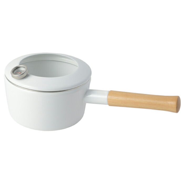 サイズ約 「本体+ハンドル」 33.0 × 「奥行き」16.5 × 「高さ」13.5cm(蓋含む)満水容量約1.6L※使用時は満水容量の6~7割の容量でお使いください。材質「本体」ほうろう用鋼板、「蓋つまみ」木製対応熱源ガスコンロ(直火)、IH(200V)、シーズ、ハロゲン、エンクロ、ラジエント※IH調理器の揚げ物モードではご使用いただけません。重量約1.1kg(小箱込み)製造元富士ホーロー生産国タイ(富士ホーロー 自社工場)ホーローについて●手作業で釉薬を掛けるため、ひとつひとつの表情には多少の個体差が生じます。●ホーローの性質上、焼成時に黒点や色むらの様に見える部位が生じる場合がございます。●油はねフードのフチ部分、温度計の穴や取っ手の裏側は鋼板の切り口となり、釉薬がかかりにくく下地の黒いスジが多少見られますが黒い部分もホーロー加工が施されております。※上記の様な場合でも不良ではなくご使用には問題ございませんので安心してお使い下さい。天ぷら鍋として、また片手鍋としても使える2way仕様片手鍋としても天ぷら鍋としても使える2WAY仕様の便利なホーロー鍋。少量の揚げ物や串揚げなどをするのにちょうどよいサイズの片手天ぷら鍋です。油はね防止フードと温度計、ホーロー蓋が付属しています。揚げ物調理をするときは油はね防止フードを付ければ、油の飛び散りを軽減してくれます。また、温度計で揚げ時が一目で分かります。フードを外せば通常の片手鍋としてお使いいただけます。蓋もついているので煮物調理にも。調理面が白く、食材や油の色の変化が分かりやすく、調理しやすいのもポイント。表面がつるつるで清潔な白色はホーロー鍋ならではの特徴です。ホーロー蓋は、つまみを下にして置いてもガタガタせず、安定しているので、キッチンペーパーを敷いて簡易的な揚げ物バットとしてもお使いいただけます。調理中におたまや菜箸などの一時置きにも便利です。この片手天ぷら鍋があれば、少量の揚げ物で大きな鍋を出す必要がなくなり、揚げ物調理に対するストレスが軽減されるかもしれません。●表面がツルツルのガラス質で油汚れがするりと落ちるホーロー製●少量の揚げ物に適した小型サイズ●油はね防止フード付きでまわりへの油はねを軽減●防水仕様で水洗い可能な温度計付きで油温のコントロールもばっちり●直火があたりにくく熱くなりにくいロングベースハンドル●蒸し物、煮物調理にも使え、簡易的な揚げ物バットにもなるホーロー蓋付き